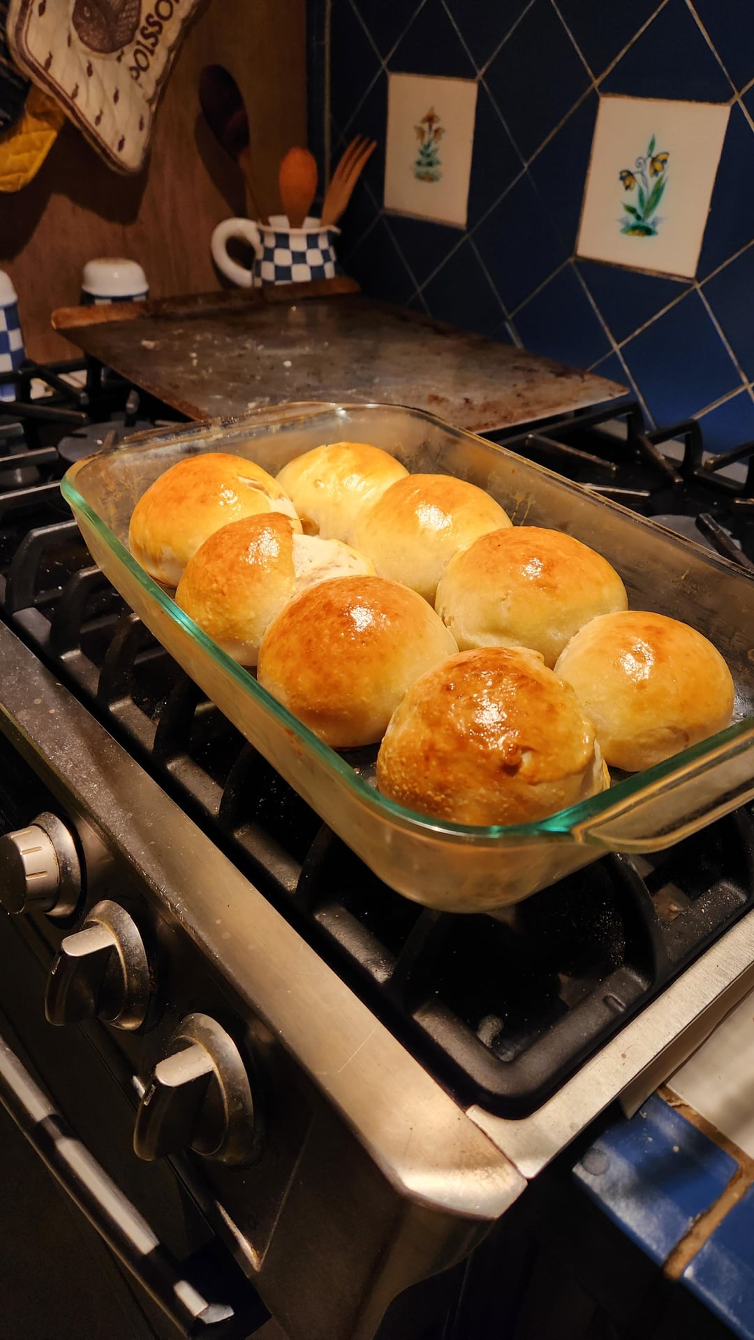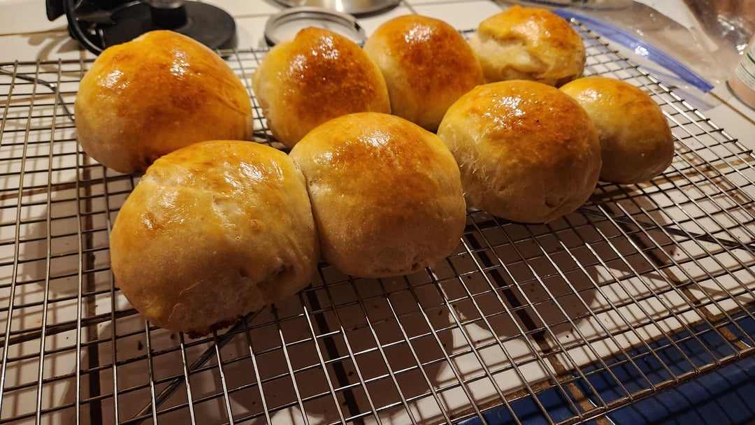 They're light, airy, buttery, like a standard yeast roll, and you should be able to taste the sourdough.