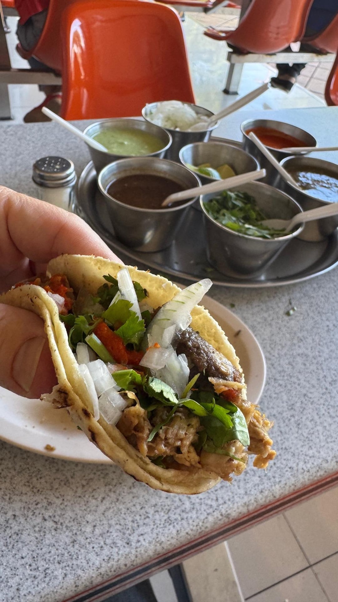 Simple sit down spot great service, 20 pesos per taco, the way it should be. One of my favs to visit when my gf and I hit up a staycation at a hotel nearby.