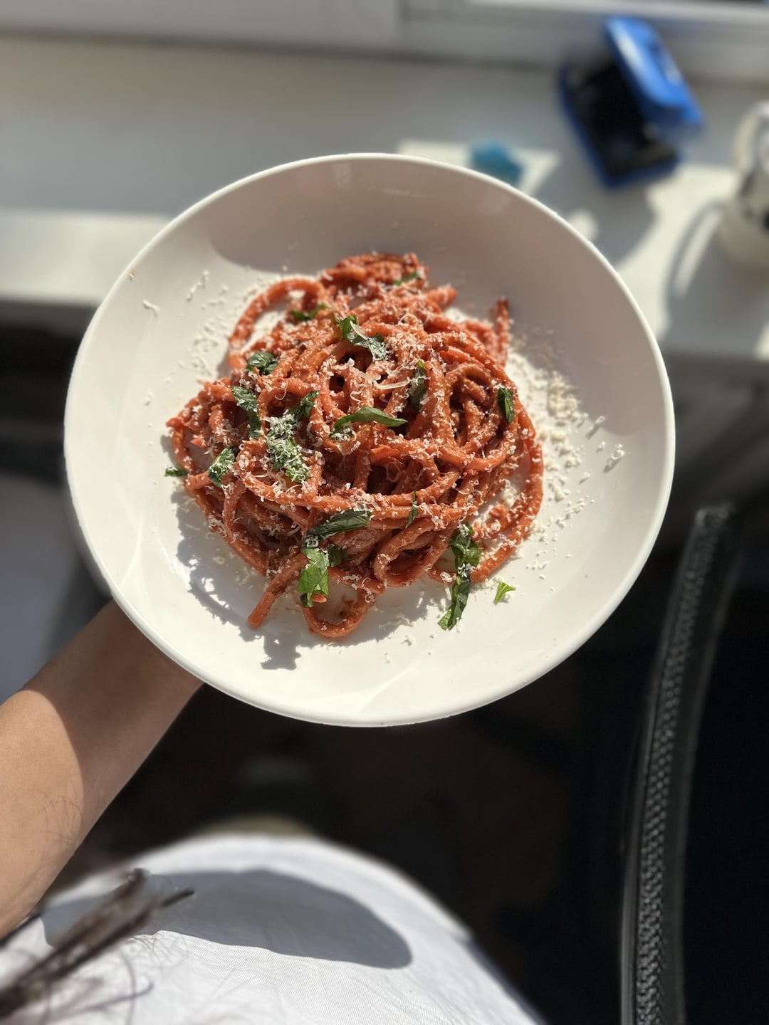 Ok_Cut_8171 9 months ago I have a huge box of pumpkin and beetroot(for colour) purée (made it last week and froze it).I sautéed Thai red chili (optional), garlic, and onion, then added the purée along with a bit of pasta water and fresh basil. I let it simmer for a while to allow all the flavors to meld.Finally, I added salt, pepper, and fresh oregano. To finish, I topped it with shaved Parmesan and fresh basil. This tasted really good !!!