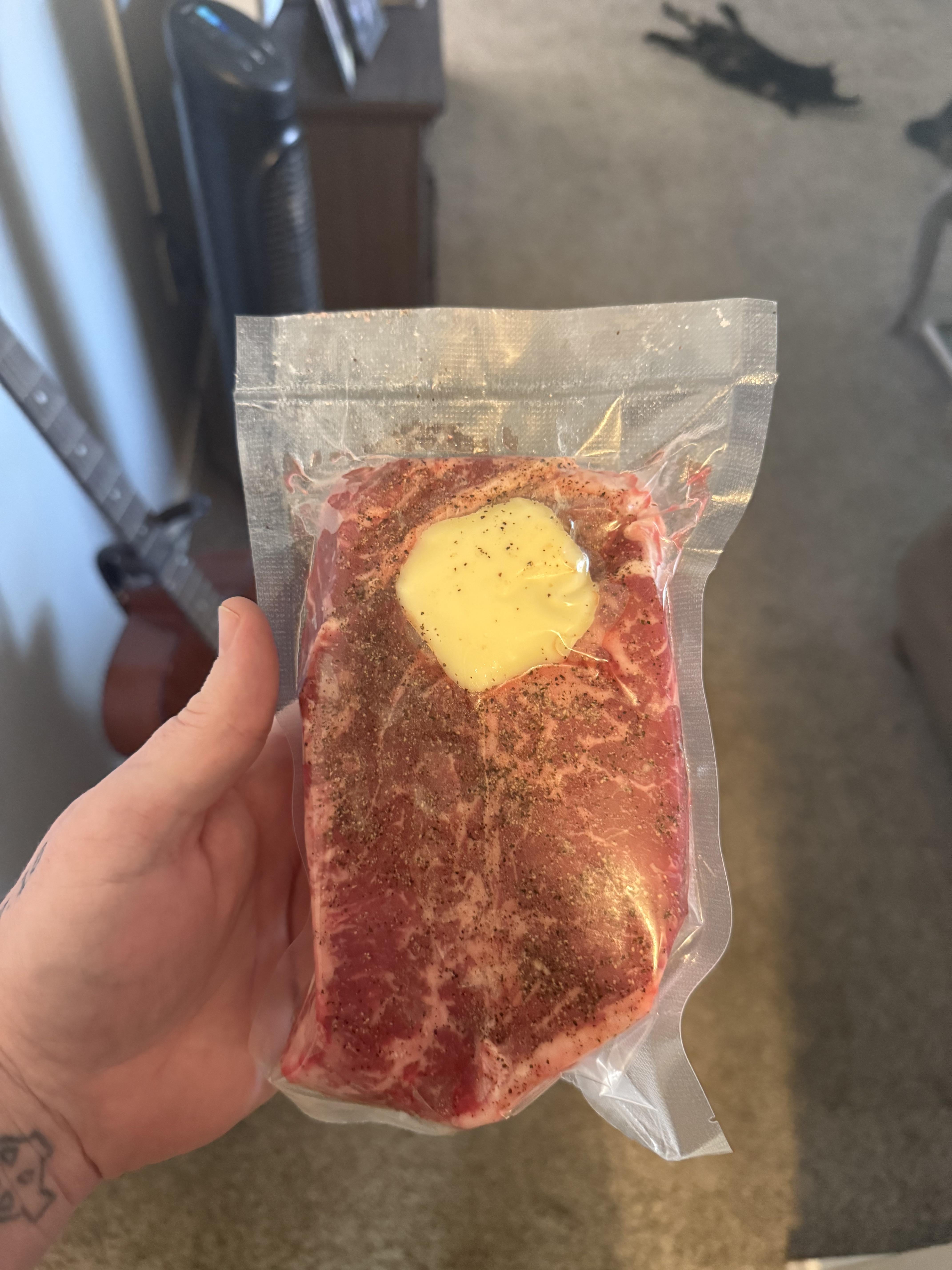 I typically like my steaks more on the rare side but I’ve been curious so I’m going to cook this New York Strip on 137. Should be good eating tonight!by AssumptionStock1333 Write A CommentYou must be logged in to post a comment.