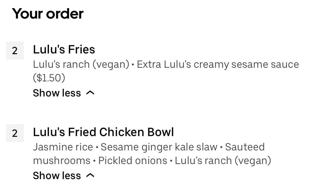 last night i got this fried chicken bowl, and some fries with vegan ranch last night. i didn’t take a picture but it looked similar to this, though i chose different add ons as you can see in the second slide. there was a rice base.