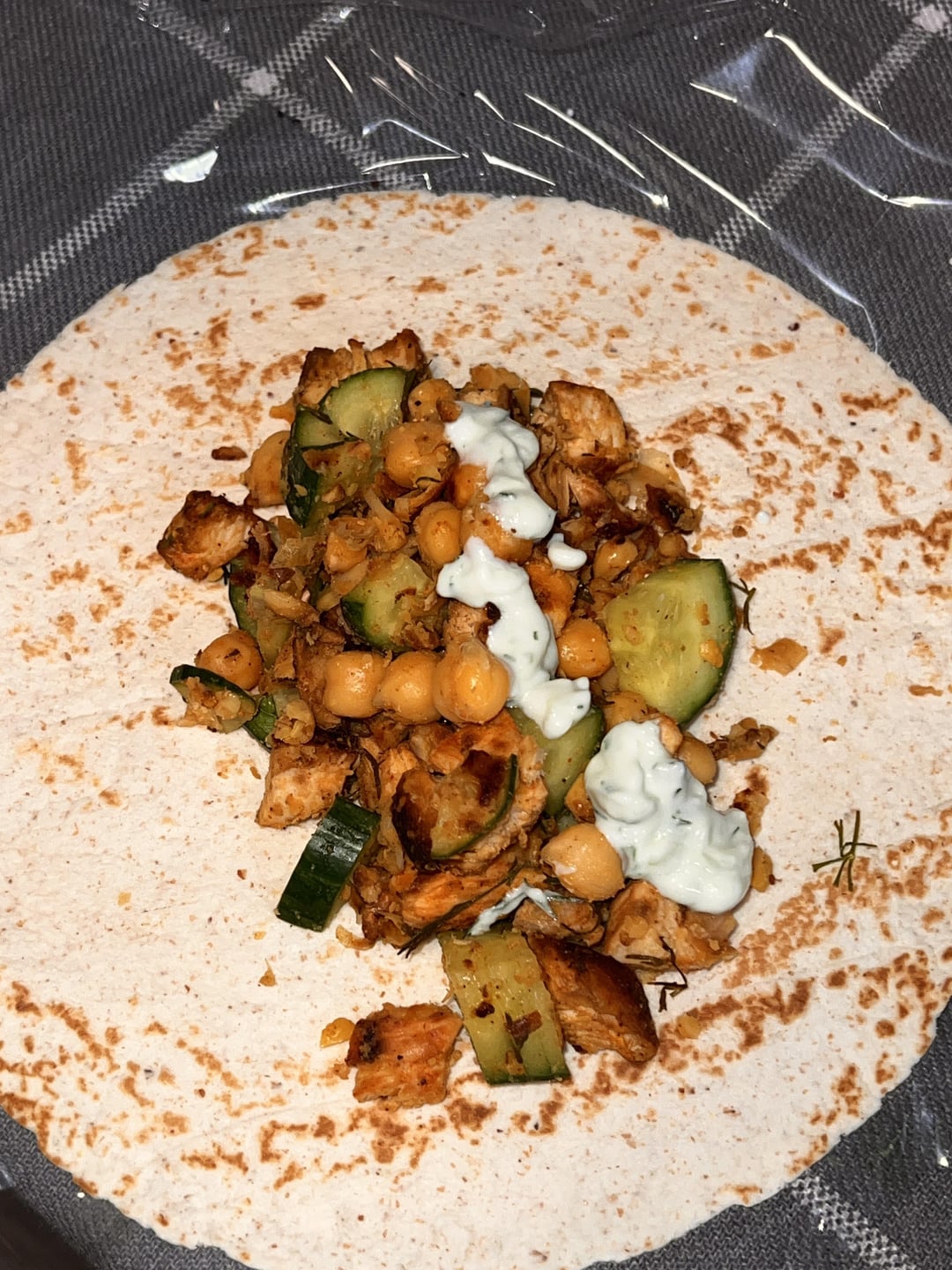 Used this recipe: https://www.triedandtruerecipe.com/chicken-and-chickpea-wraps