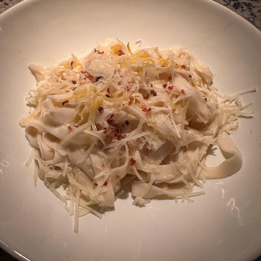 I’d wanted one of these for a while but usually machines like this get put in the cabinet and not used because they’re a PIA to clean. Not so with this little Phillips Viva! My mom got a fantastic deal on it ($100 off on Amazon) and I got a whole bunch of bronze dies from Pastidea. It’s taken me some time to get the right chew I like for my pasta but it’s so fun to make and I’ve been having a lot of fun with it! Yesterday was Tagliatelle, lemon, butter, olive oil, shallots, garlic, red pepper flakes and Parmesan. Best one yet I think! Tackling ravioli tomorrow!