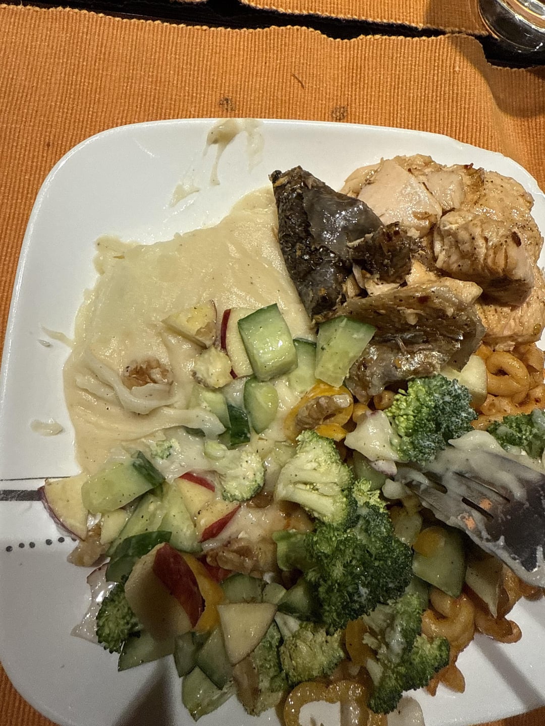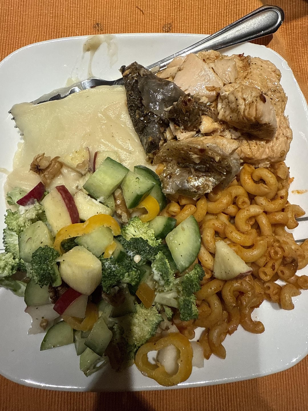 Almost half the plate is mashed potatoes. Salad with a little bit of light mayonnaise. Thank you!!by uhohstinkydavinky Write A CommentYou must be logged in to post a comment.