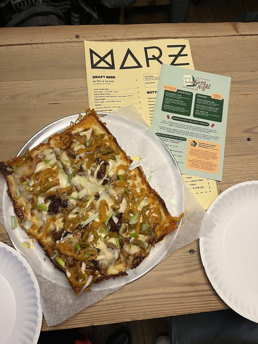 I had Peking duck pizza at Marz Brewery tonight as part of a Lunar New Year fundraiser! This was a collaboration between Grumpy Pies Pizza and Triple Crown.