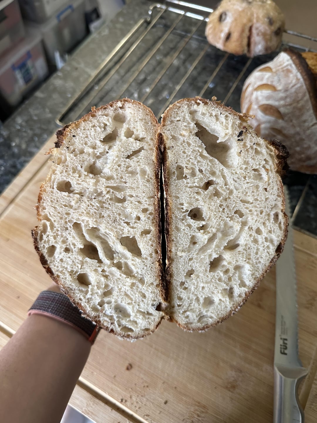 But to me the crumb looks good! You can try to ferment it a bit longer next time to find your sweet spot.