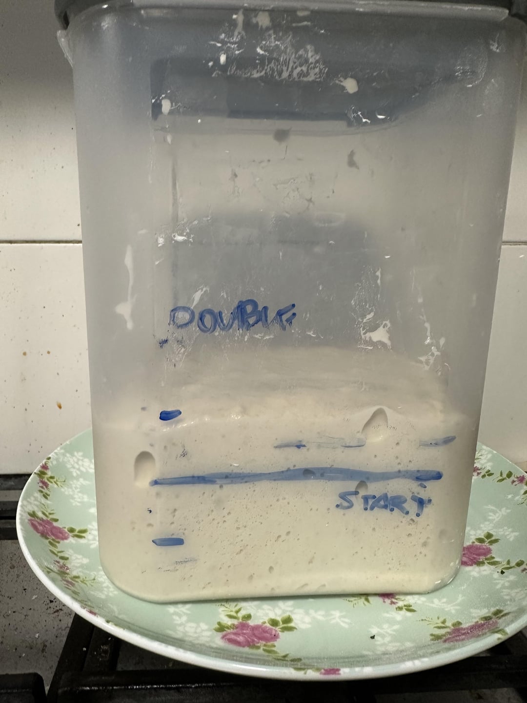 *I took a guess and chose to measure my rise from where the dough hit the sides of the container, rather than the peak. Not sure if this is correct but I thought this might be more accurate? Fourth pic is the levels when I chose to shape (also it was 11pm and I wanted to sleep 😅) - Pre shape and rest for 10 mins
