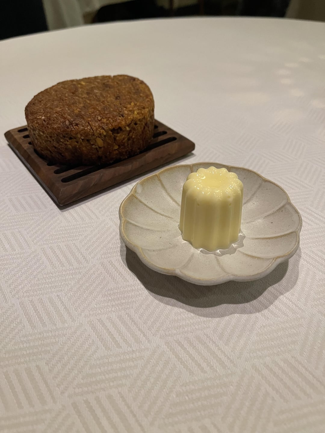Bread course – Seed bread. Butter. (my favorite savory course.)