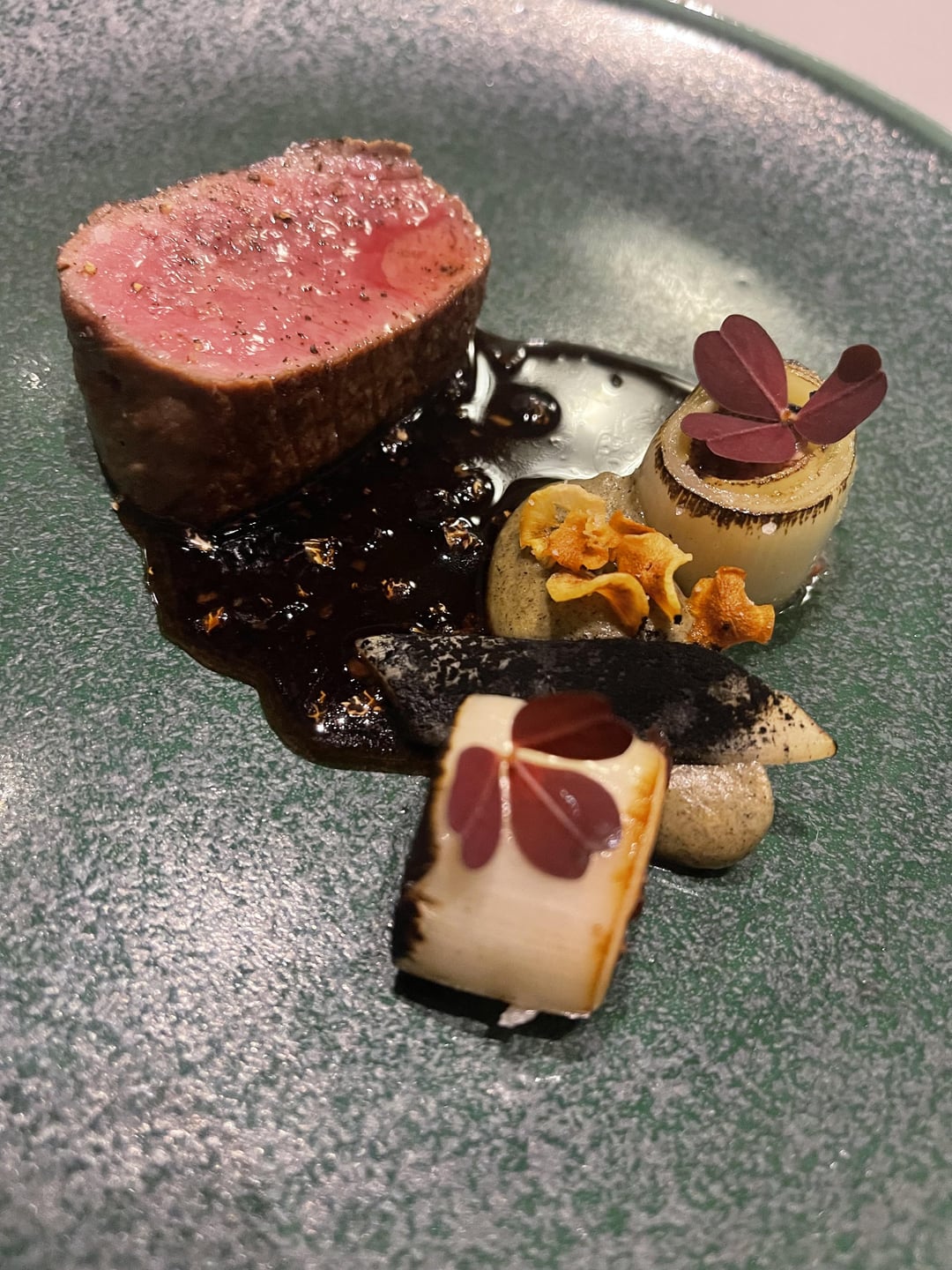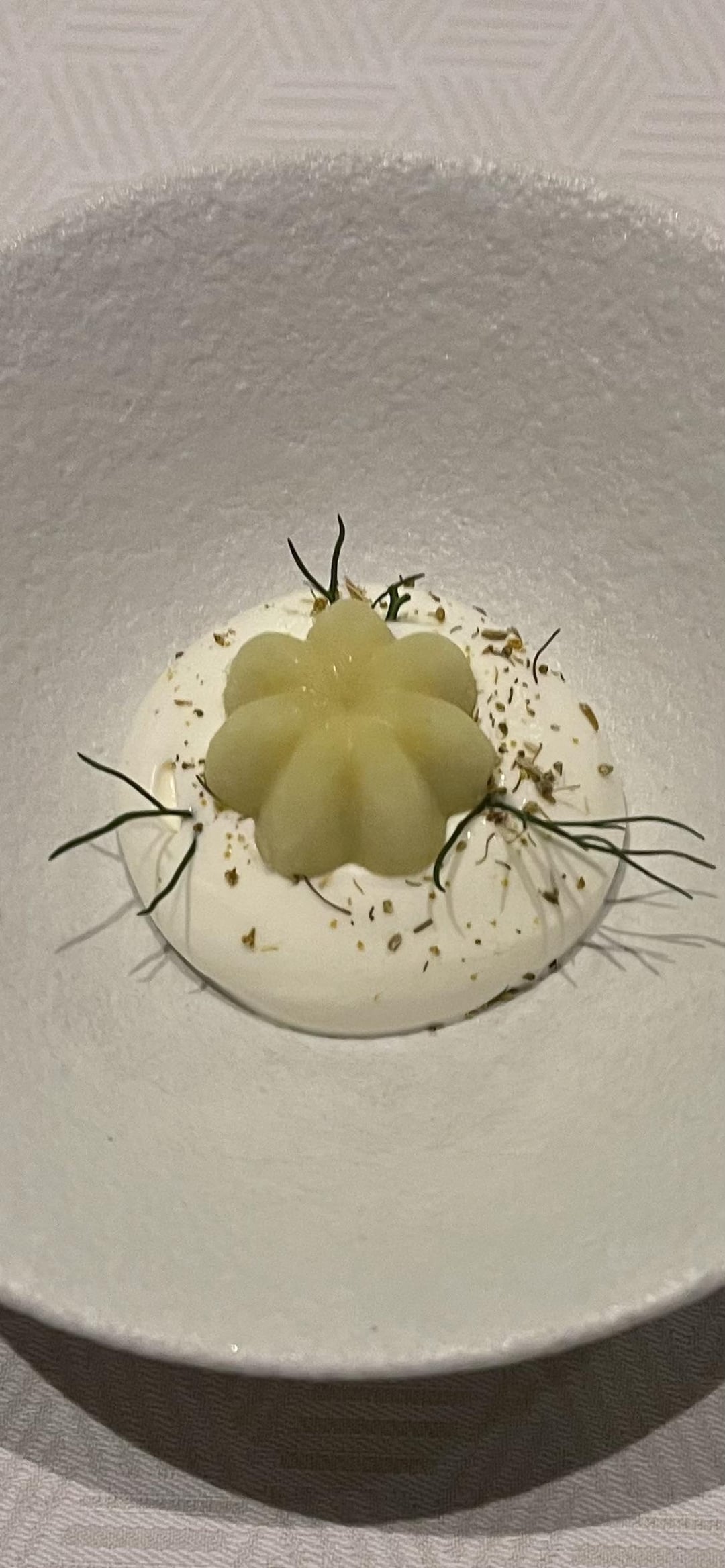 Palate cleanser – pickled apple. Smoked cream. Celery root. apple sorbet. (fantastic dish.)