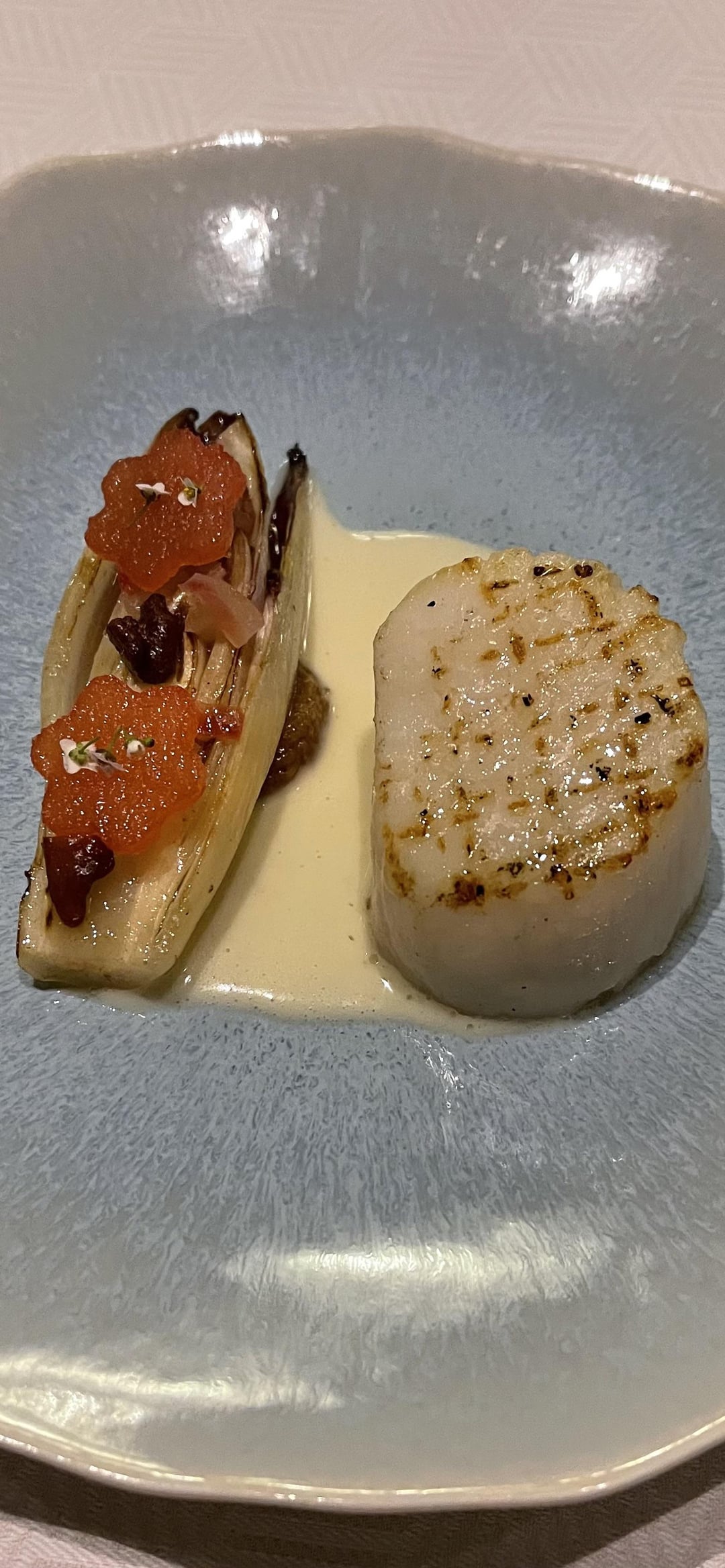 Course 2 – scallop. Endive. Compressed pear. Walnut.