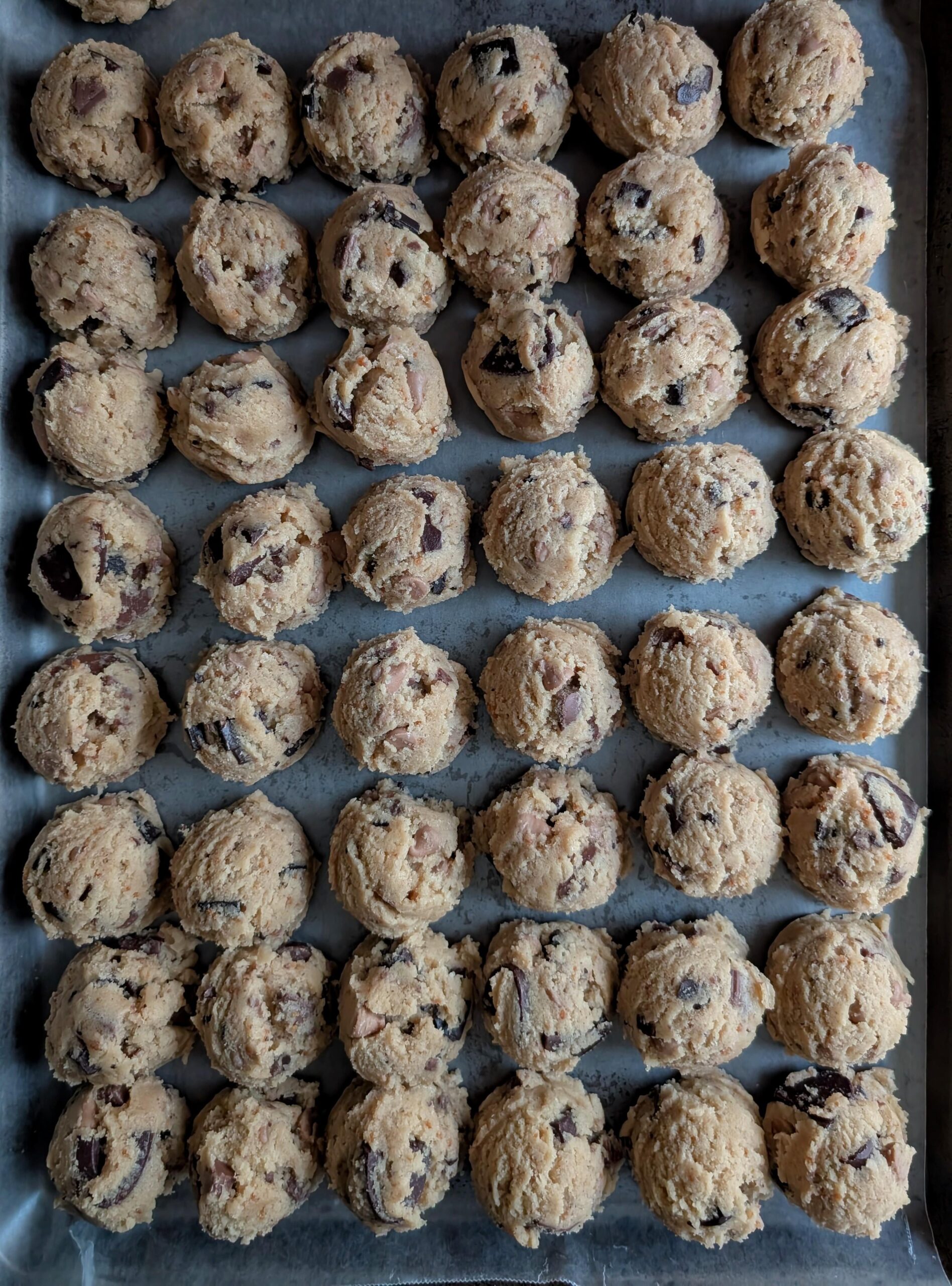 I did this last Christmas, total of 400 cookies mixed and scooped. So nice if I ‘need’ cookies and I don’t want to eat all the baked cookies when I can only bake 6-12 at a time.