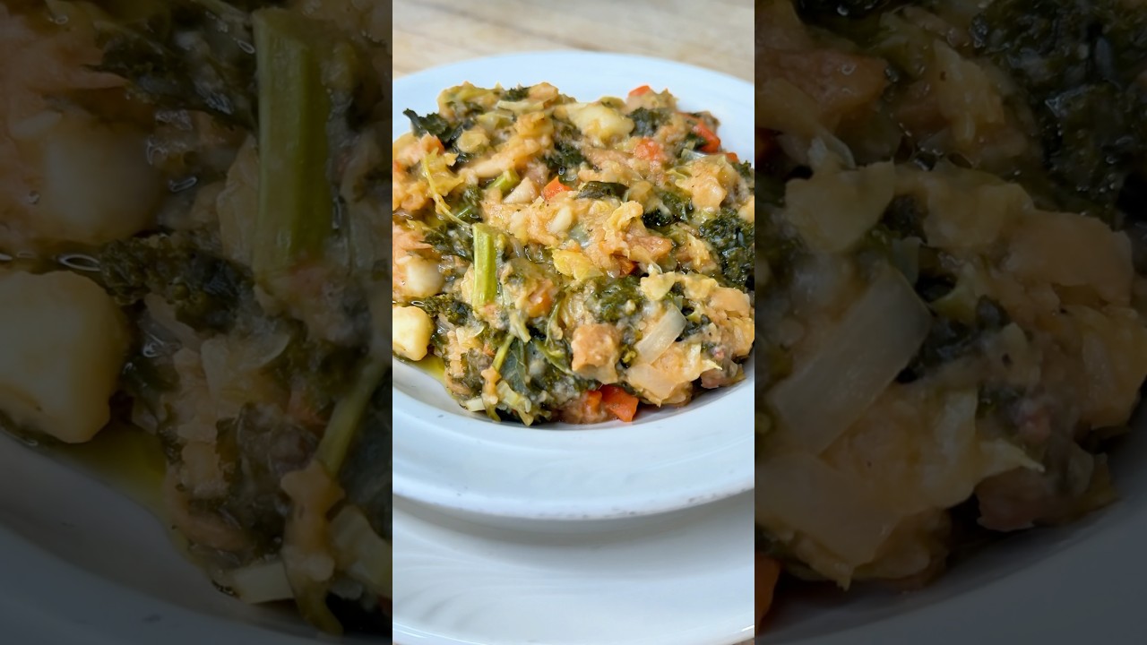 Add the chopped kale, cabbage, season with salt and pepper and bring to a boil.