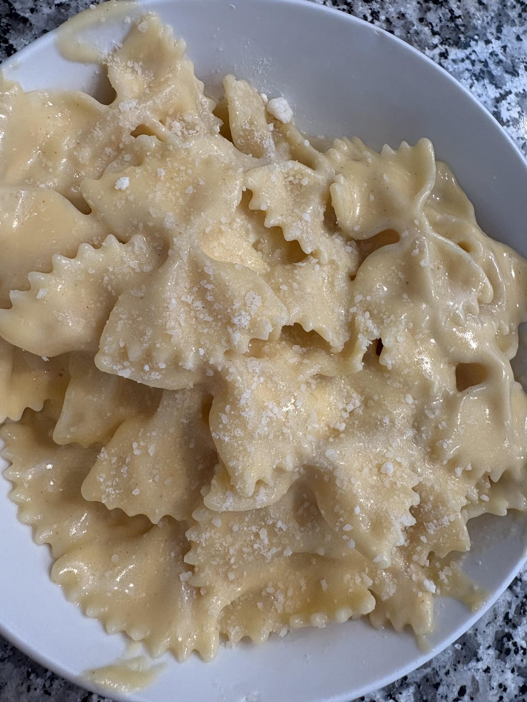 Difficult to stab and with a chewy center: I’ll see you in hell, bow tie pasta.