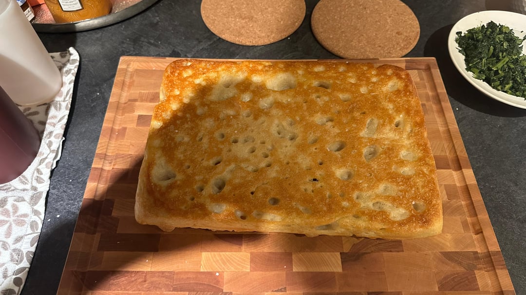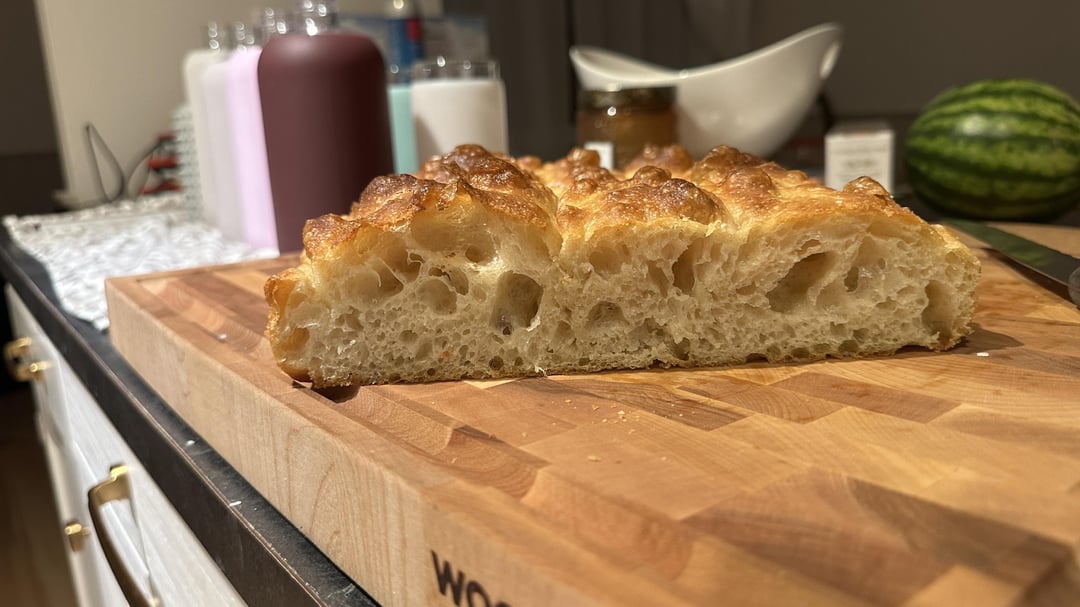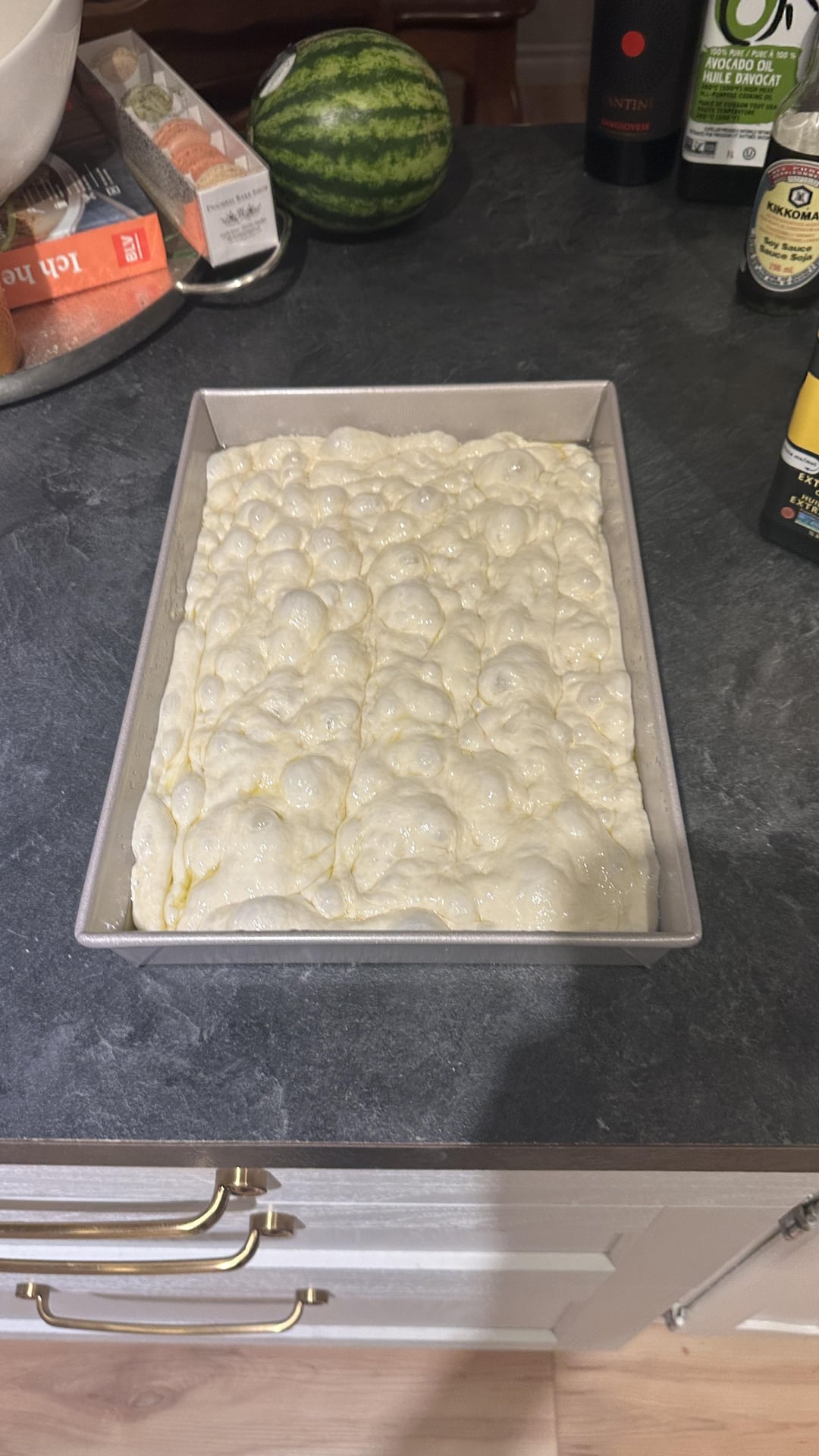 First go at sourdough focaccia turned out pretty good if I do say so myself