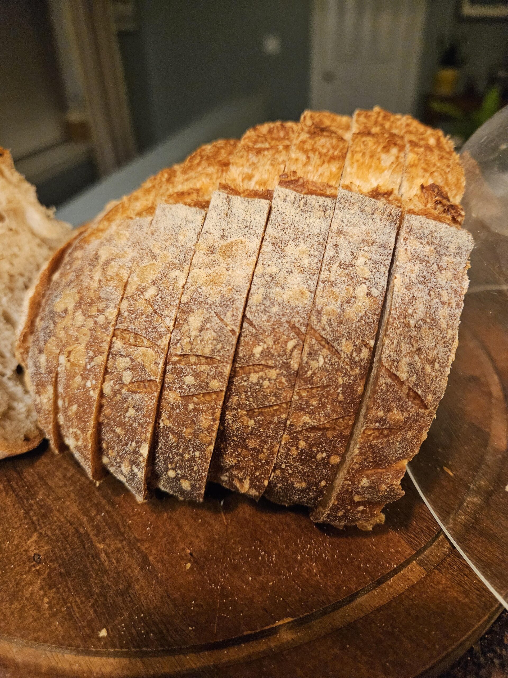 I’m clumsy on a good day, and slicing sourdough has caught me a couple times. Last time it was my poor thumb on Christmas and I held up opening presents because my stupid thumb would not stop bleeding. Mom had to come dump cornstarch on it, then I sat there looking like I was trying to hitchhike and opened most of my gifts one handed ðŸ˜ðŸ˜‚
