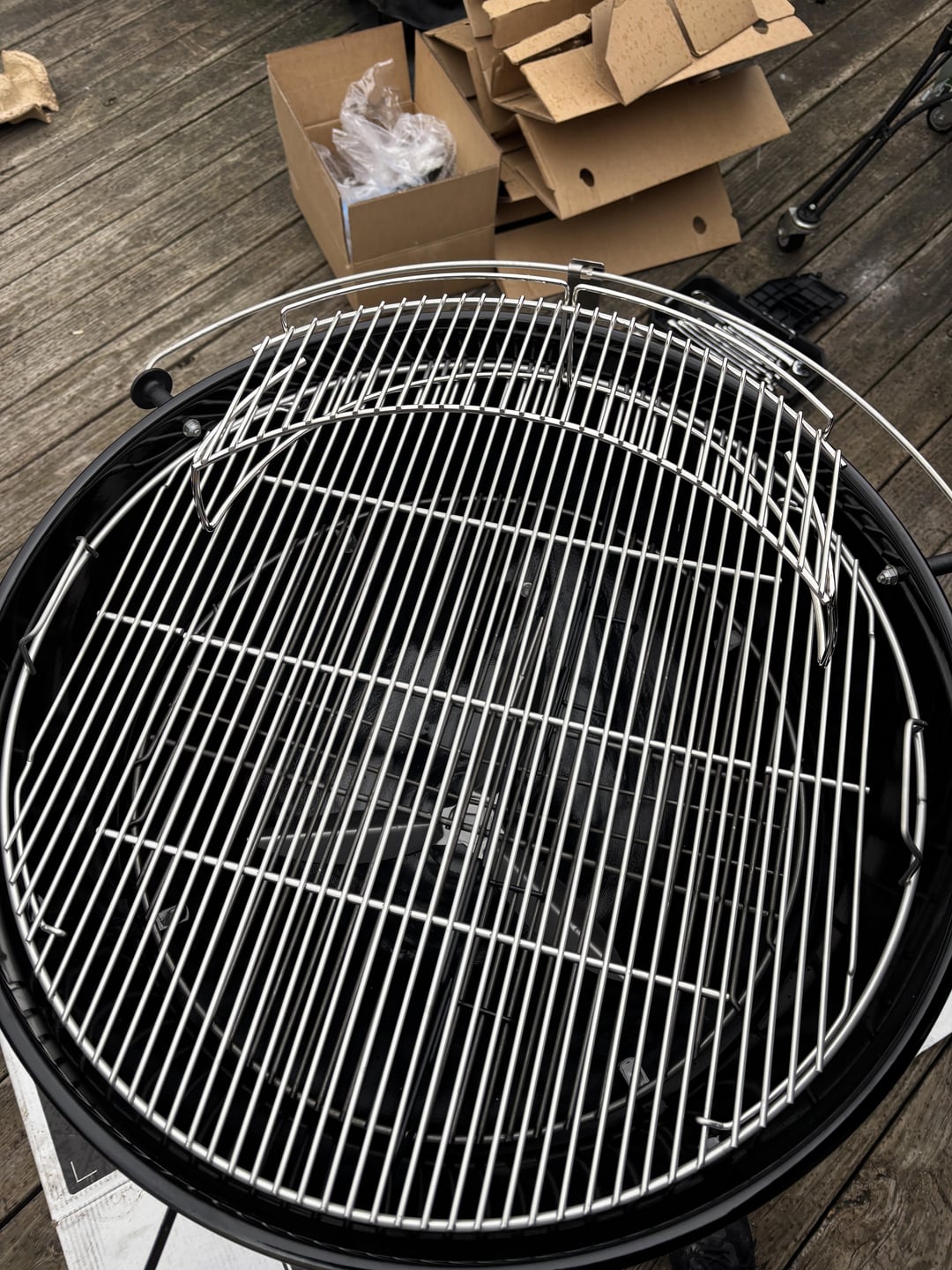 My 26” master touch kettle did not come with the advertised Weber craft grate, instead it came with a normal hinged 26” grate which I originally planned on purchasing. A simple claim with Weber and I’ve got the Weber craft grate on order, although it won’t be available until spring I can wait for it since I originally planned on getting the normal hinged grate. Guess I have two different grates now 🤘🏽
