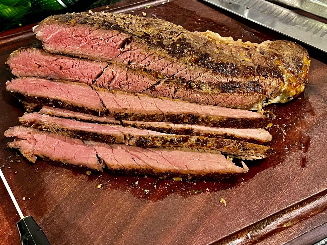 I cooked this Top Round at 133°F for twelve hours, seasoned with S & P, Montreal Steak Seasoning, Prepared Horseradish, and Dried Herbs. It was tender, and had good flavor. Next time I would try 129°F.