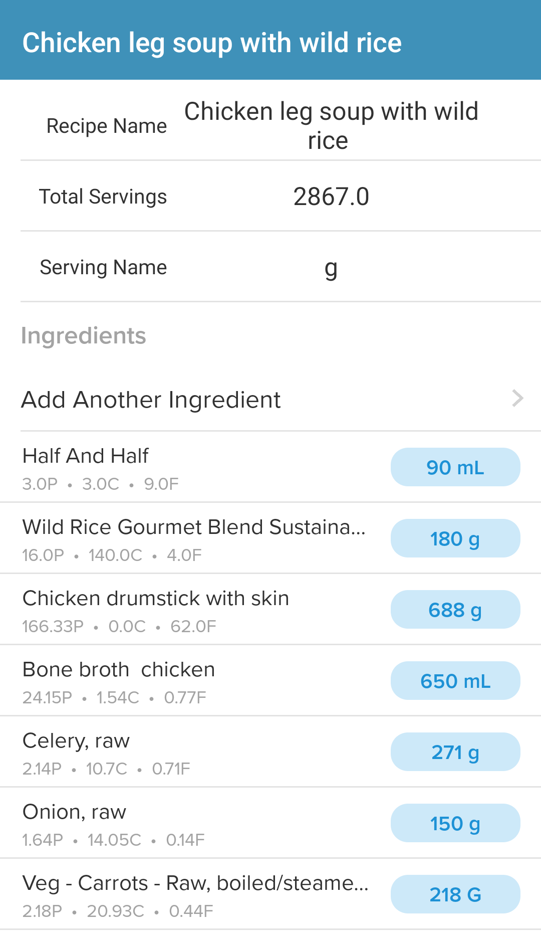Pics of the soup, ingredients of caloric significance, and my macros for dinner tonight.