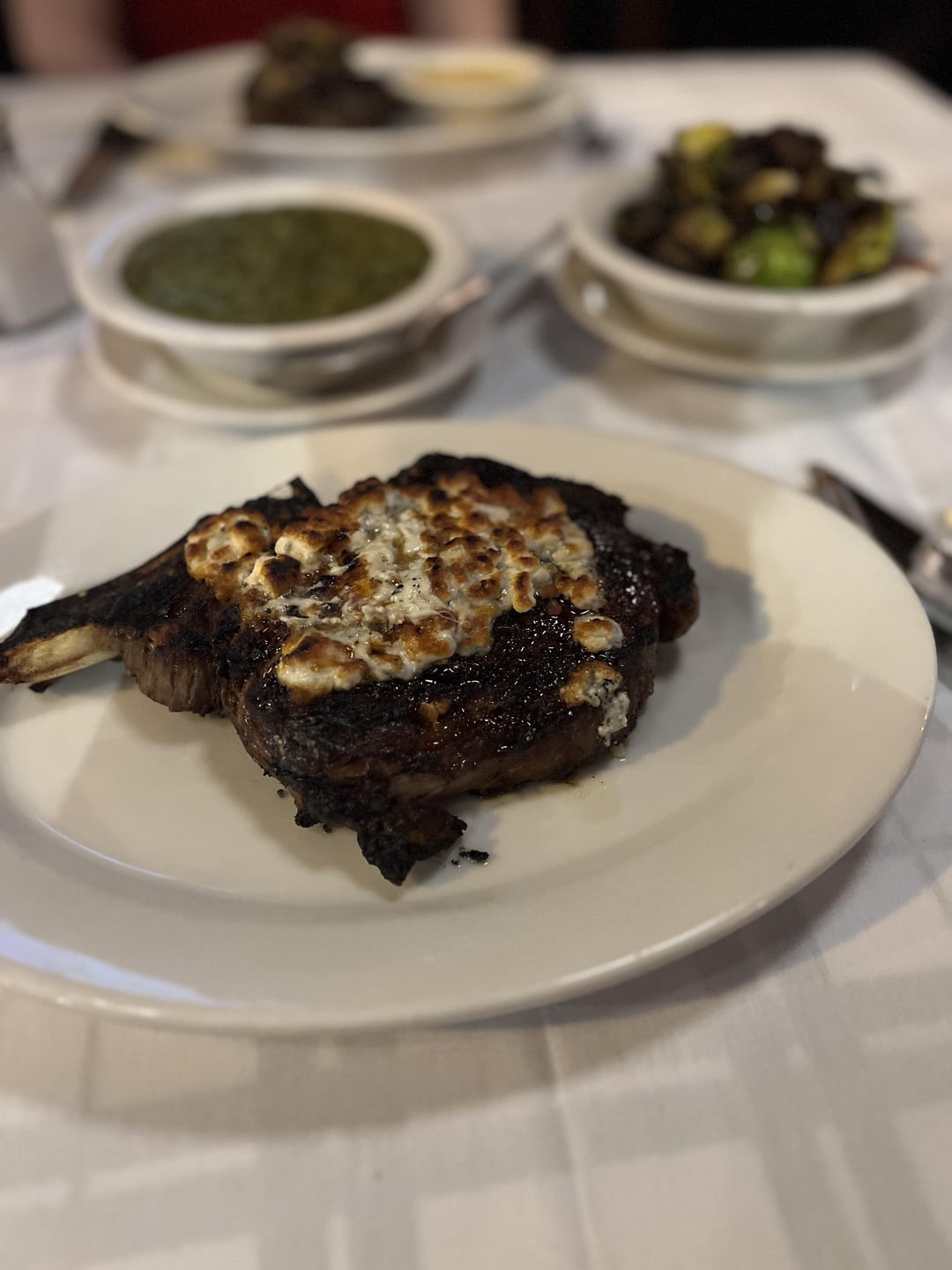 4) Gibson’s – WR Chicago cut with blue cheese crust. Creamed spinach and brussel sprouts sides