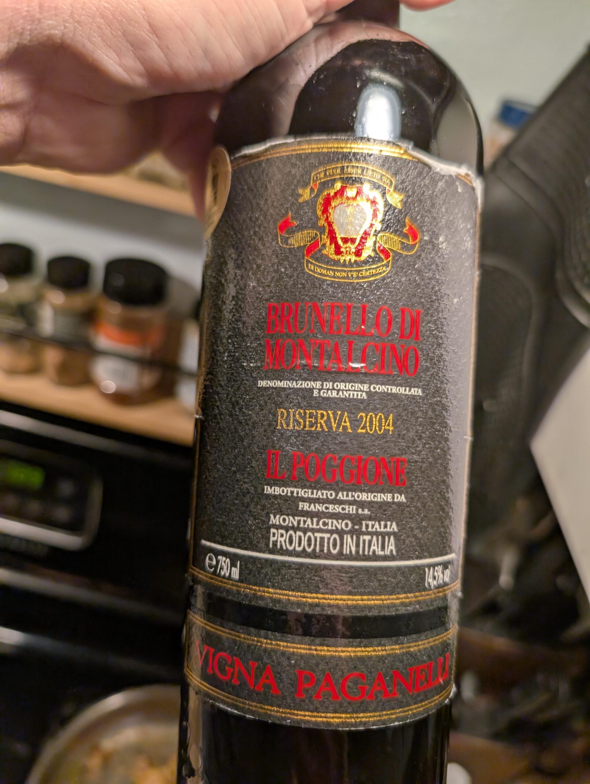 Ooh baby, I love Il Poggione. This wine is probably towards the end of its peak, but you can’t know for sure until you pop the bottle. 2004 was a fantastic vintage, so if this bottle held up, it should be spectacular. Have fun and let us know how it is!