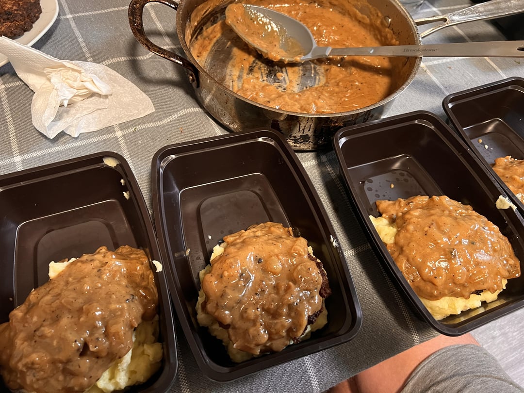 Slide 7: Hamburger steak with mashed potatoes and gravy