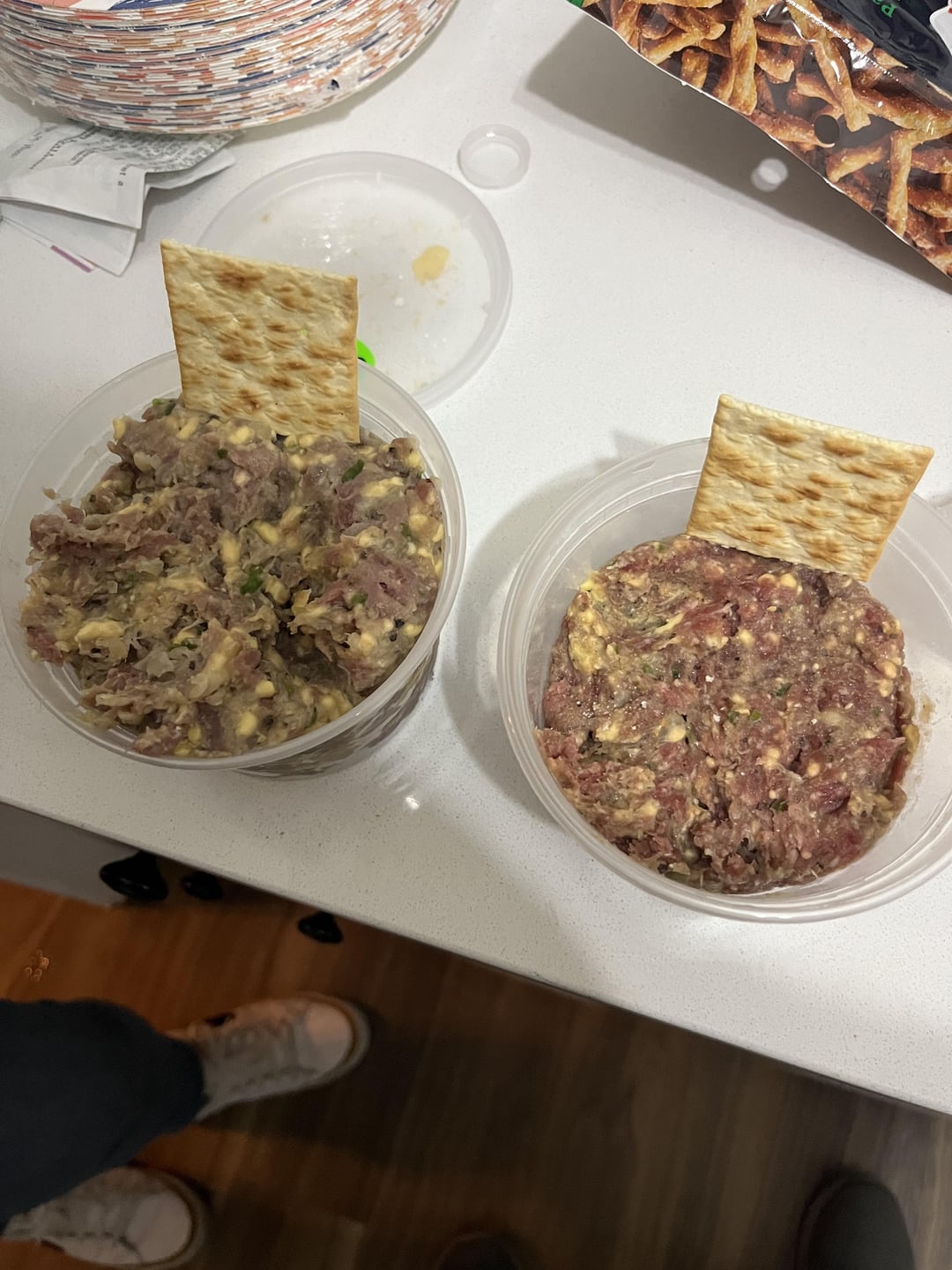 Nothing like raw meat, American cheese chunks, spices and a hint of lime. Man I eat that stuff by the pound in a sitting!