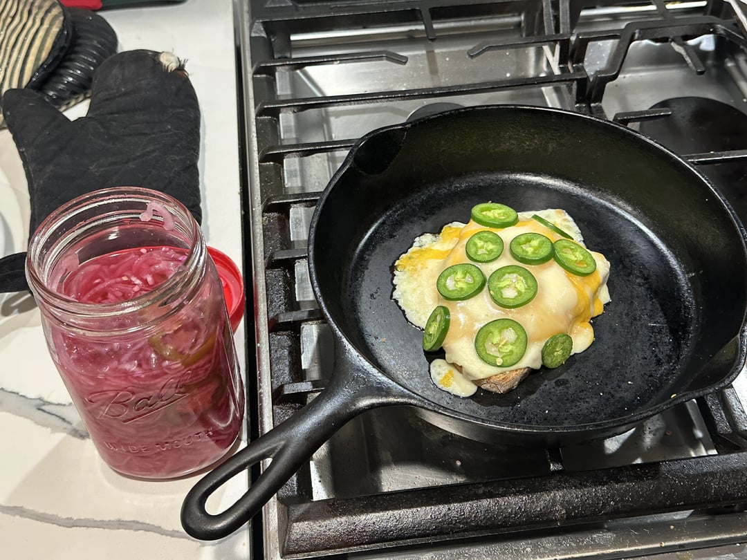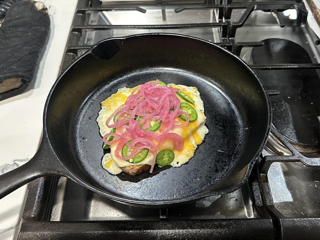 I eat practically everything with pickled onions, but I’ve never put them *in* a toasted cheese! I bet that’s insanely good