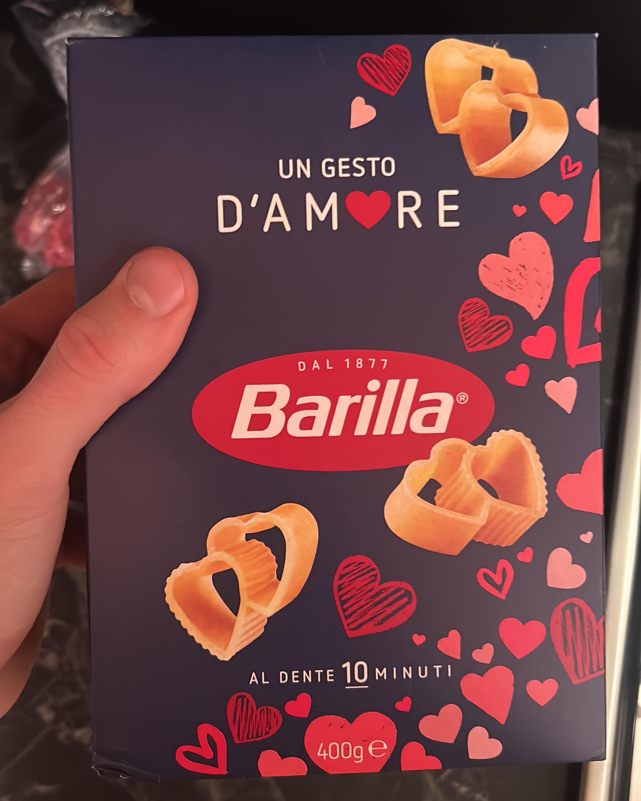 Special Valentine’s Day pasta found in Italy by Norimoa 3 Comments AJZong 9 months ago Cute mumblerapisgarbage 9 months ago We bought a box on Saturday in the states… at Walmart. Cool to see this in the original Italian though. Dammit- 9 months ago Found the same pasta at a Lidl here in the states. Gonna make some Amatriciana for the fam next Friday night. Write A CommentYou must be logged in to post a comment.