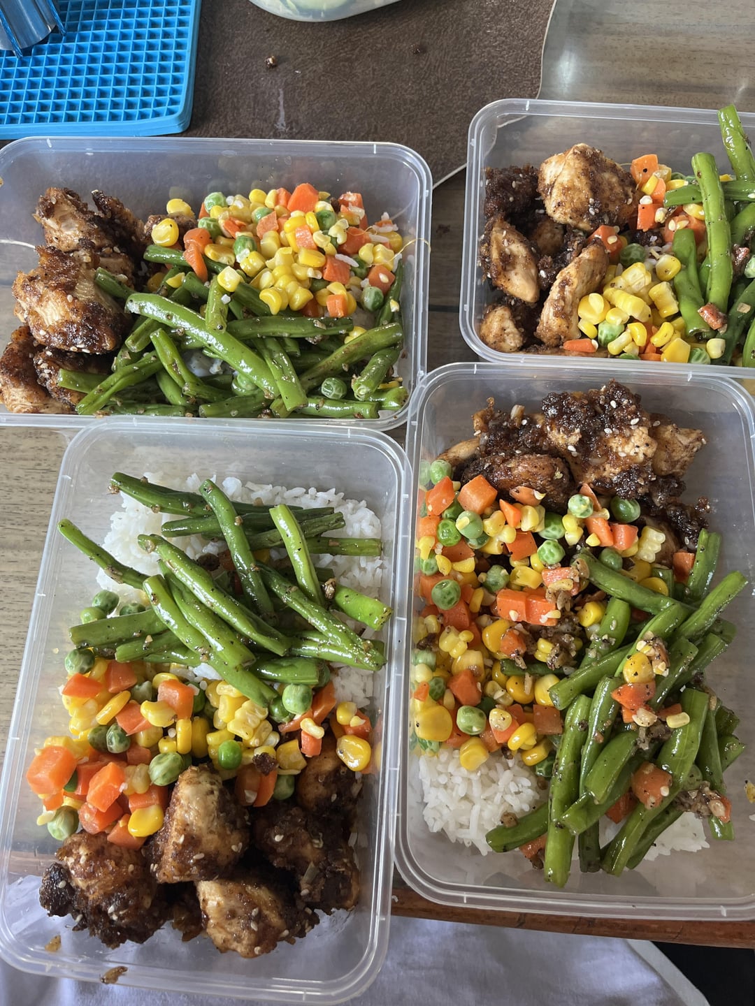 Week 1: Garlic honey soy chicken Mixed vegetables Sautéed green beans RICE!!!Week 2: Buttered chicken Fried Tofu Corn Sautéed cabbage and carrots Rice by Commercial-Pop3894 Write A CommentYou must be logged in to post a comment.
