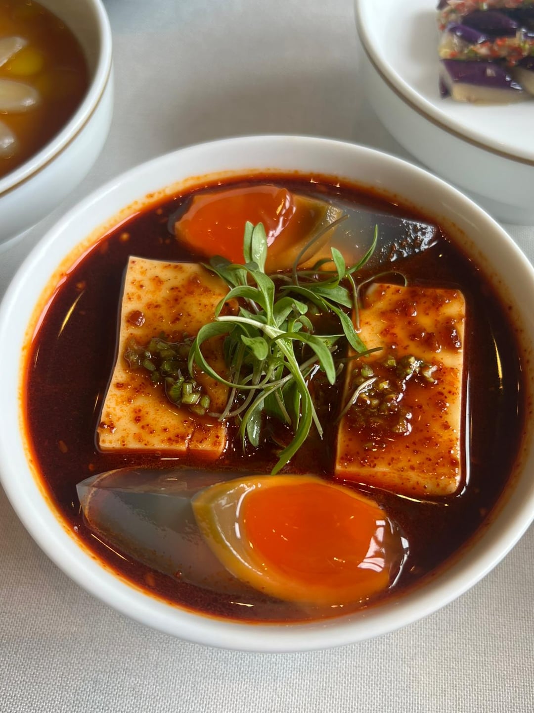 +century egg & Okinawa tofu, creamy egg yolk, mochi-like tofu, well balanced Sichuan chili oil. Extra noodles to mop up the sauce.
