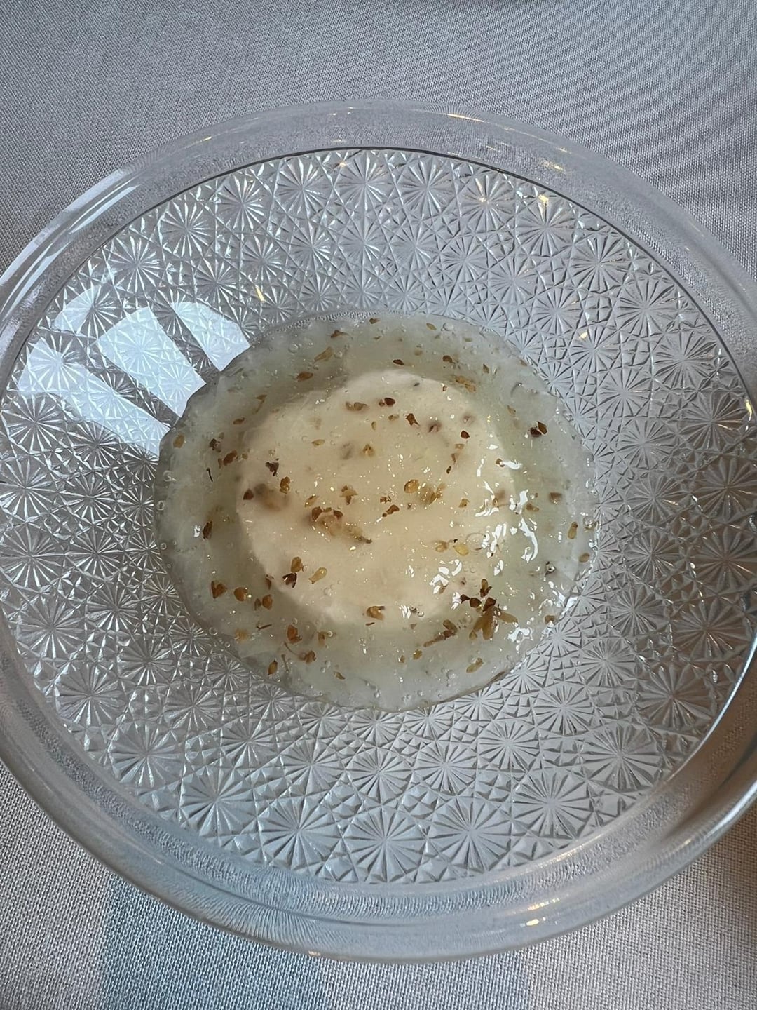 ~osmanthus jelly & coconut sorbet, osmanthus flavor way too light, so it just tastes of coconut sorbet with scoops of jelly.