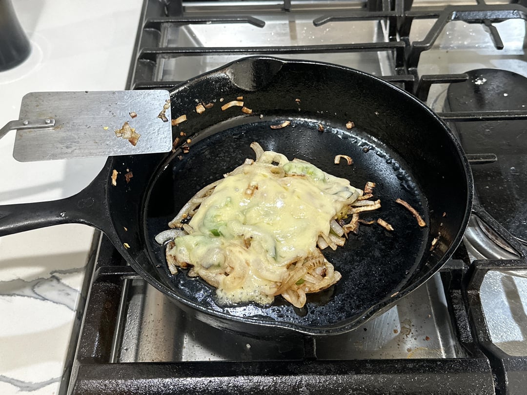 OrangeBug74 10 months ago I like a slice of an onion with Muenster cheese and thin sliced ham for grilling.