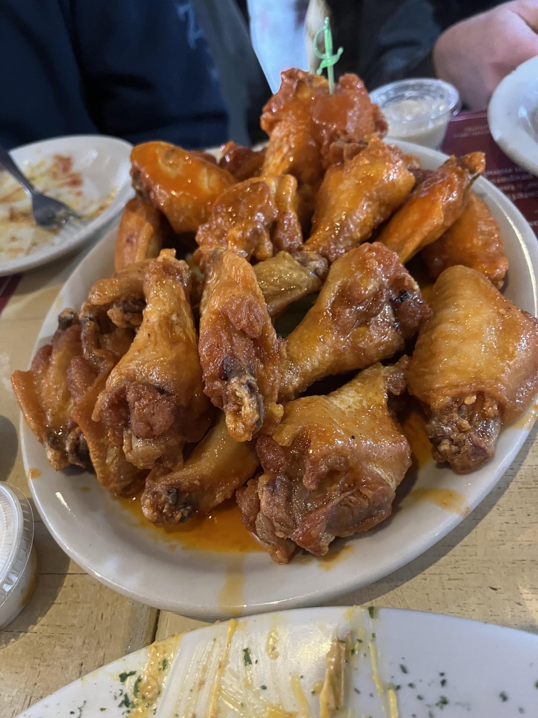 After talking about doing this for nearly decades, my wife, me and some of our long time friends since college days made the journey to Buffalo for some authentic wings. We hit Kelly’s Korner Saturday and Gabriella Gate Sunday. Both suggestions I found on Reddit. We tried the medium sauce at both places. Kelly’s Korner wings were fabulous! Nice crisp, meaty wings and the sauce was drinkable. Gabriel’s was also terrific but slightly less awesome in taste and crispiness of skin. Also, Kelly’s Korner comes off as a very local, non-touristy spot. Gabriel’s a fancier place with an upscale feel and much broader menu. Gotta add in here that we got some Beef on Weck as a side car to our wings at both places, albeit Gabriel’s calls it a Cottage Sandwich. The beef in weck at Kelly’s Korner was incredible. Loaded with delicious and tender meat and the roll was great! I am already looking to plan another trip back to Buffalo to hit some other spots. Any suggestions welcome here! Thanks for prompting this wing adventure Reddit. Many of you shared great posts that put our trip into motion! (FYI- we traveled in from Pittsburgh and Gabriel’s wings are in the first photo and Kelly’s are the second photo with the Yuengling beer side car).
