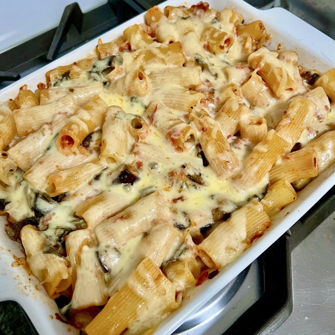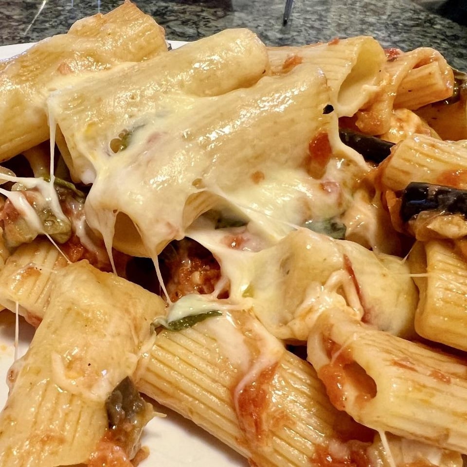 Roasted eggplant, garlic, onion, basil, marinara, parmesan and mozzarella.