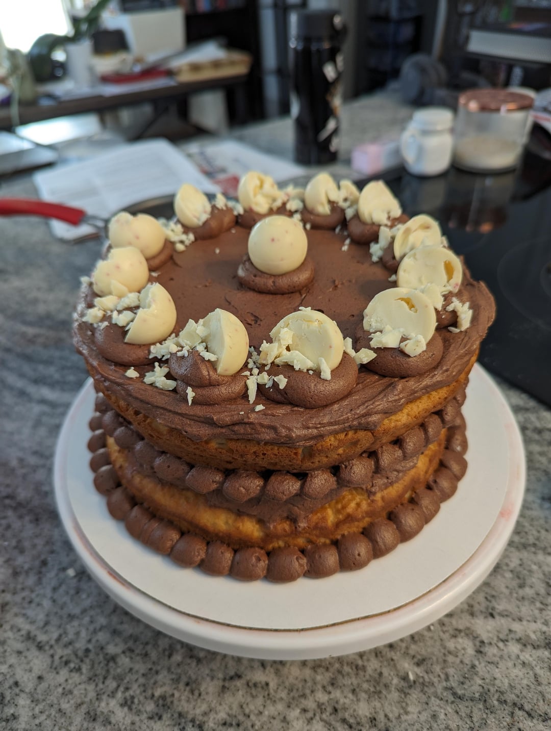 Had to make an unplanned/last-minute cake and didn't have time for a lot of effort. Thought the swirls would be cute until I realized that I effectively made a 💩 cake. Fortunately my stash of Lindor truffles saved the day and it was a bit…not my finest cake moment but perhaps one of the funniest ones!