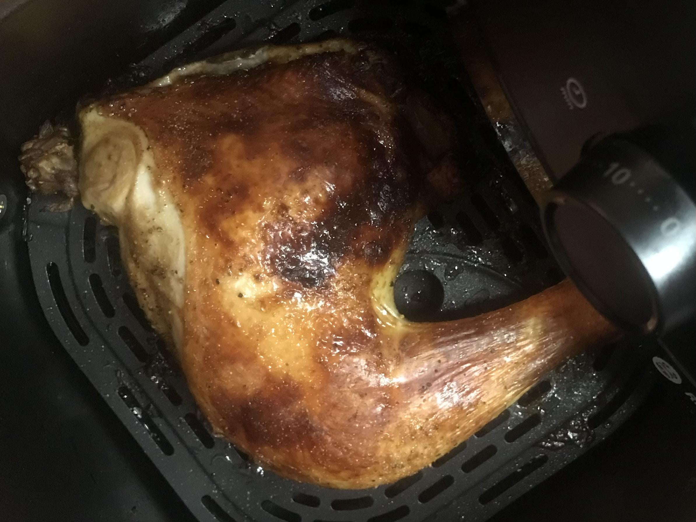 5. Place the marinated chicken leg in the air fryer basket and cook for 20-25 minutes, flipping halfway through.