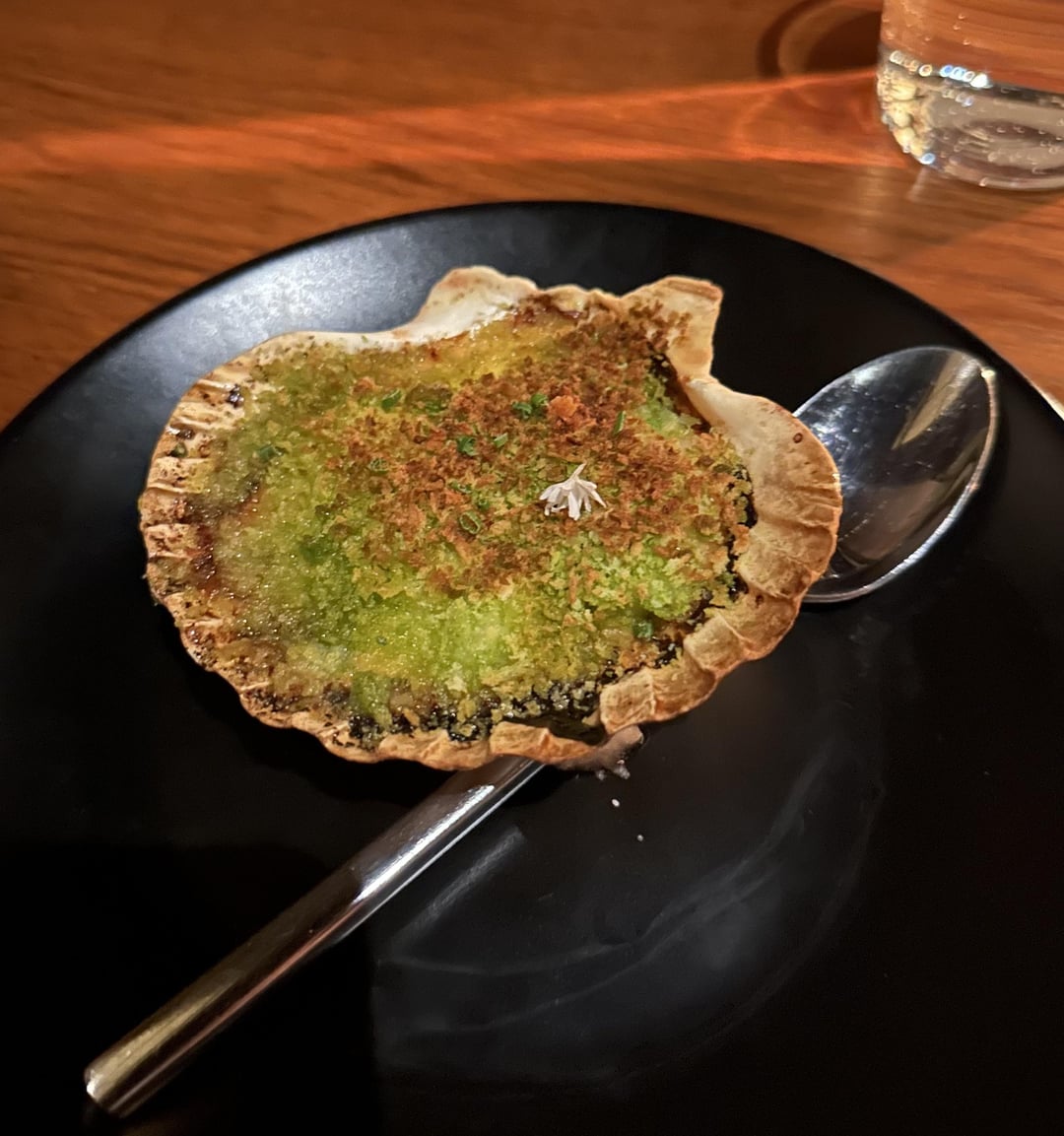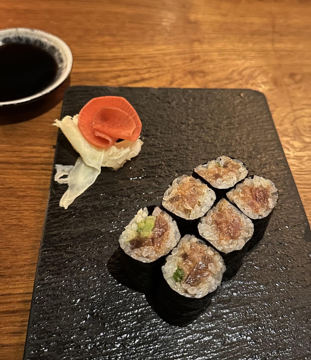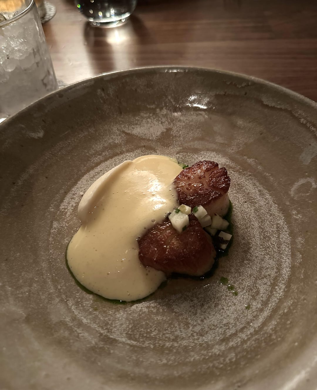 The maki roll tasted better than it looked, but I preferred the shio koji salmon one I sampled from someone else. The unagi was nicely seasoned but the rice basically disintegrated as I went to eat the nigiri. The scallop itself was great, but I thought there was a little too much acidity in the topping.