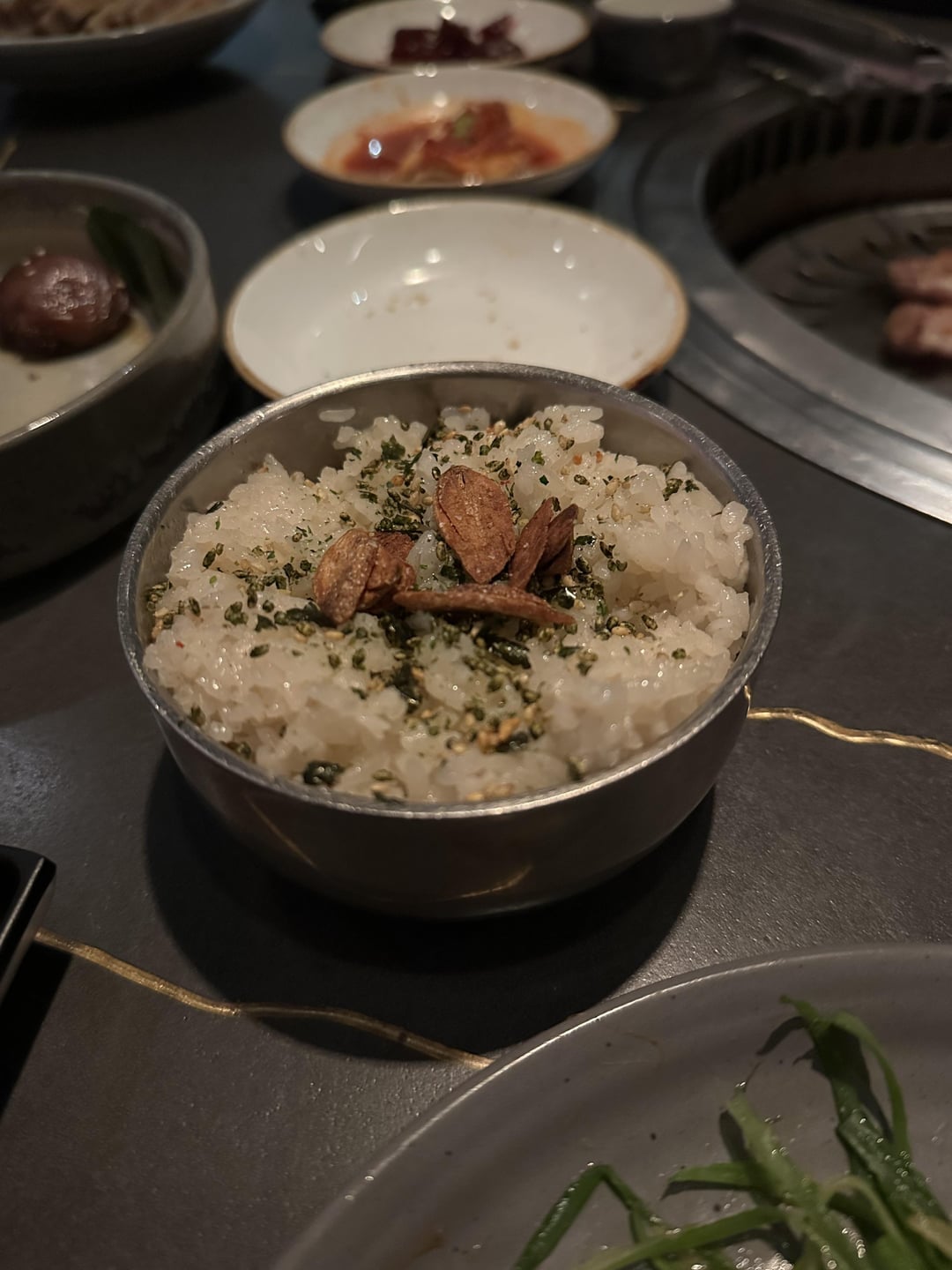 It was my first time coming here, and it was a lot more upscale than my typical Korean BBQ joints. Service was enthusiastic and friendly. We tried the Korean chicken wings, honey butter potatoes, marinated galbi, heritage pork belly, kimchi fried rice, garlic rice (2), and an assortment of banchan and accompaniments (1). The quality of the ingredients was good, but I found the meal lacking in both flavor and portion size. The banchan were the biggest letdown for me. I guess I prefer a more bountiful, traditional experience when it comes to KBBQ.