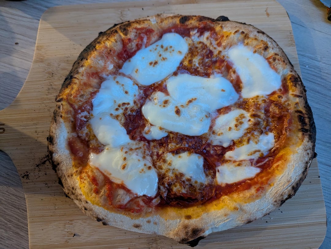 Still a massive beginner. About my 6th or 7th attempt at using a wood fired pizza oven (karu 12g). I made a 72 hour 65% hydration and a same day 75% hydration dough. Some mixed results. These tasted the best I've ever made but not all were the best looking. The 72 hour dough tasted far superior and was crispier. The same day was nice and looked really good but was much more airy and fluffy in texture. I had no basil and my child didn't want anything except tomato… sort of a marinara. No olive oil no basil no nothing but she did eat 2. She preferred the same day dough which was interesting.