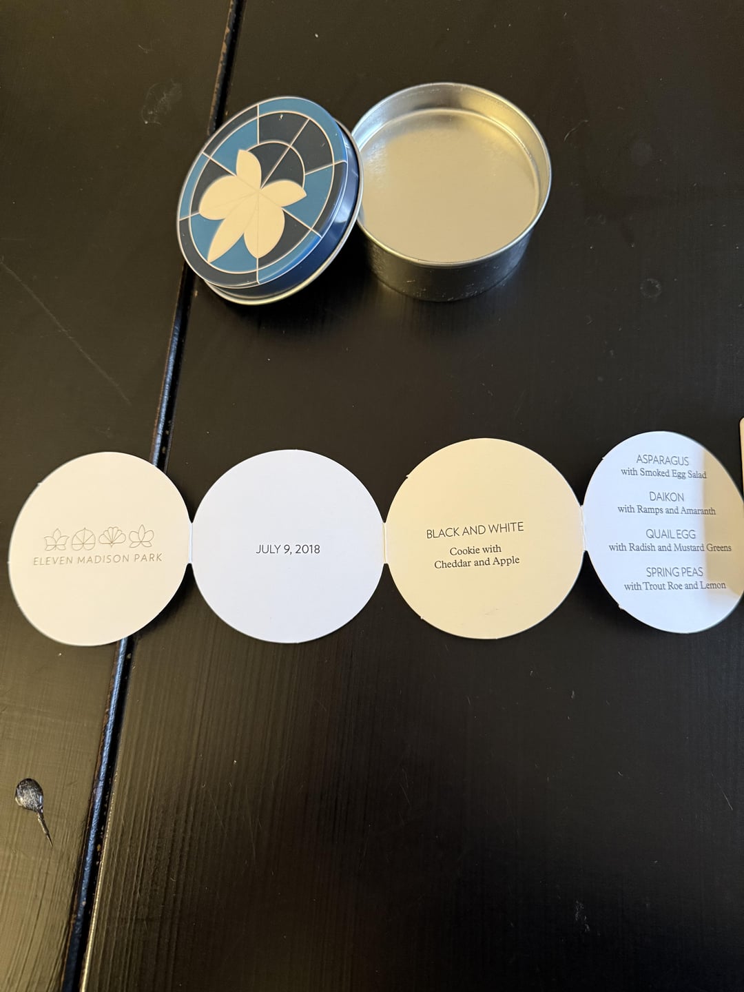 In its glory days they sent you home with this little tin containing the menu and a bag of granola by Willing_Anywhere_643 5 Comments robarpoch 9 months ago I’ve got a couple of those knocking about too! Yloo 9 months ago i’ve got one too, and the container the (delicious) granola came in JessterCPA 9 months ago I have 4 of them on my shelf. Good times. vagrantwastrel 9 months ago I use the tin for maldon salt, it’s perfect Retrooo 9 months ago Do they not do this anymore? They did when I went a few years ago. I still think about the granola often. I’m going to try to remake it with [this recipe](https://cooking.nytimes.com/recipes/1014304-eleven-madison-park-granola).Write A CommentYou must be logged in to post a comment.
