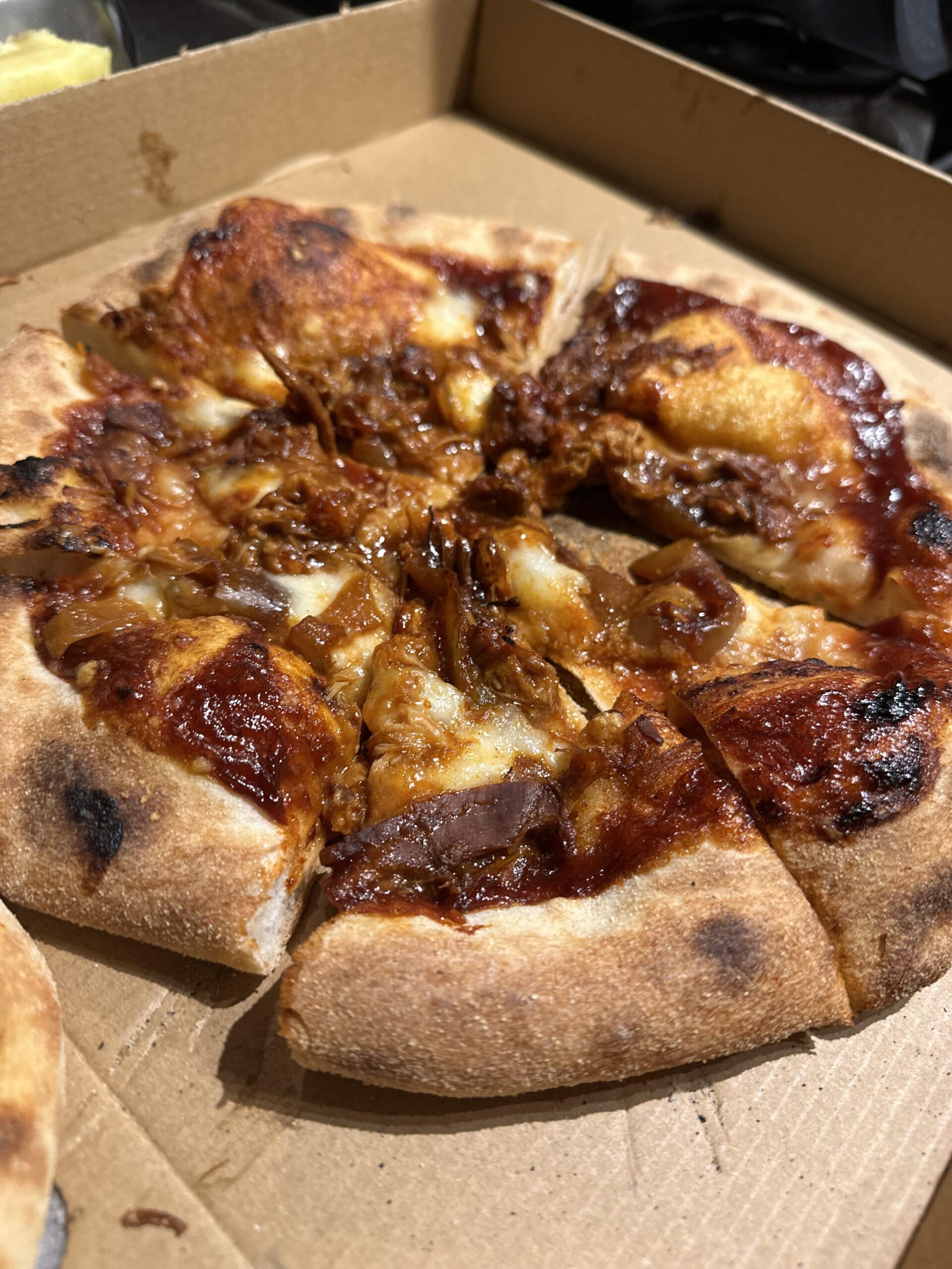 First, you have the chicken that shouldn’t be on the neapoletan pizza. Second, you have the bbq sauce that also shouldn’t be on the pizza. Wtf