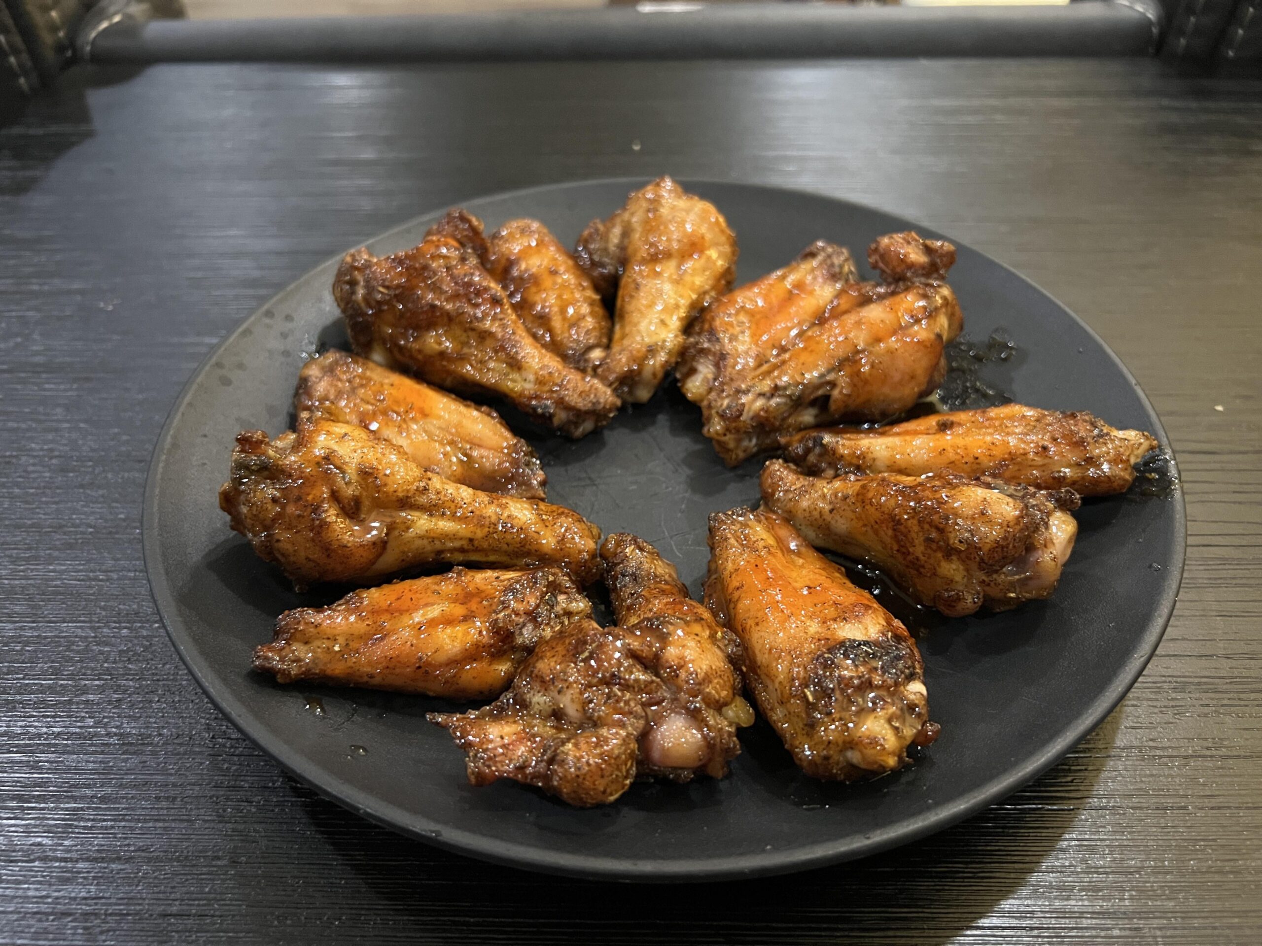 Baked with a baking powder + spice blend and tossed in honey sriracha sauce.