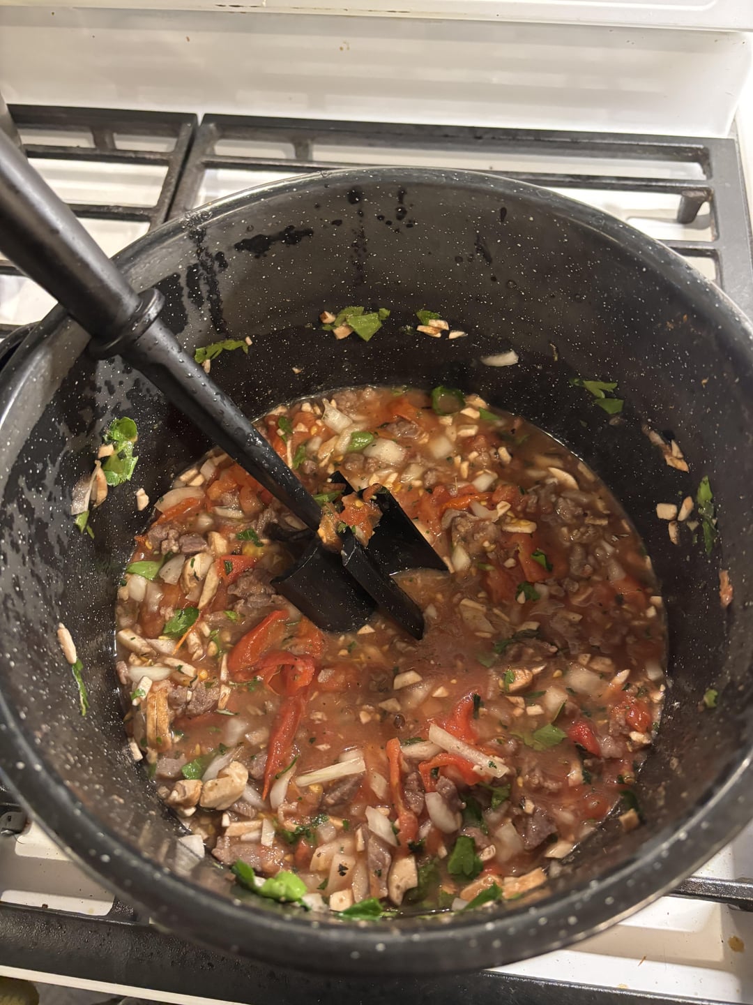 Looks like stew on top of pasta… you need to use ground beef and some olive oil no flour on the beef , some wine helps the flavor of the sauce also takes several hours to evaporate the water out of the sauce , this will help it stick to the pasta …