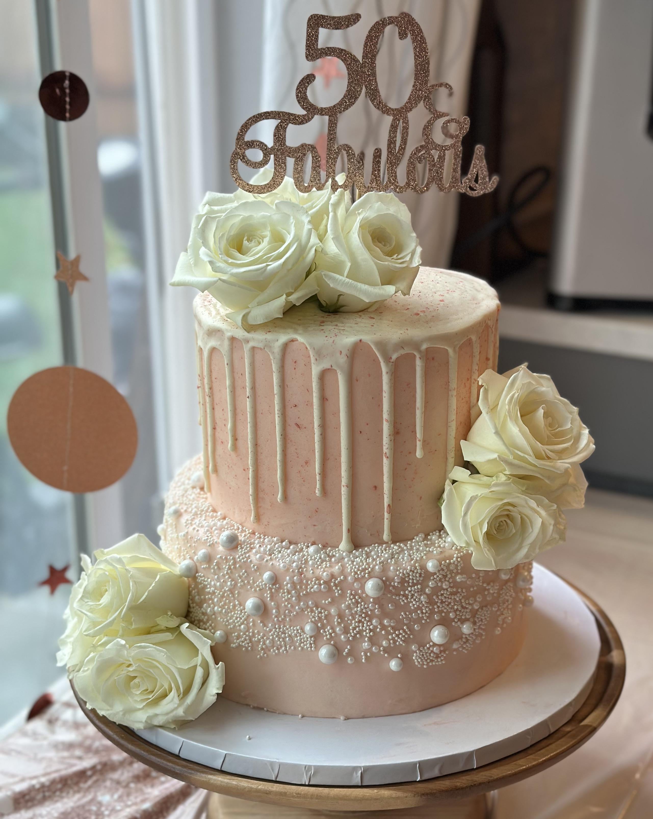 We threw my mom a surprise 50th party and this is the cake I made for it. I think it turned out so pretty! by akayleah1992 4 Comments Hungry_Card7101 8 months ago How sweet, and so pretty! Love that soft pink color! pinkpeonybouquet 8 months ago Beautiful! SeaKick3134 8 months ago That looks fantastic! MsToshaRae 8 months ago A beautiful cake, I’m sure your mom enjoyed it.Write A CommentYou must be logged in to post a comment.