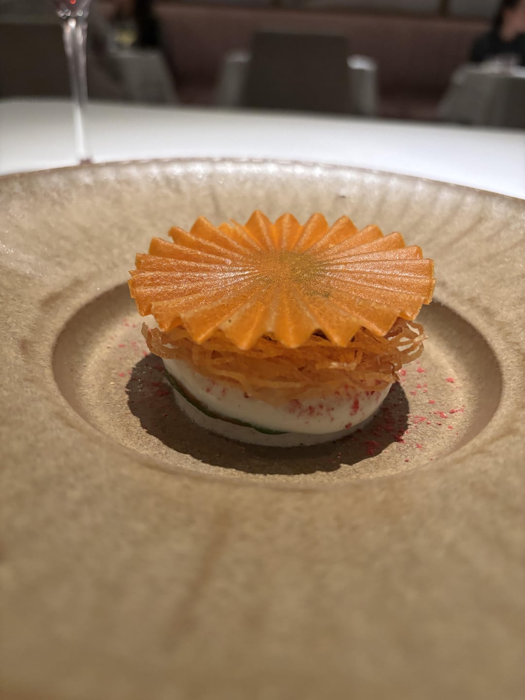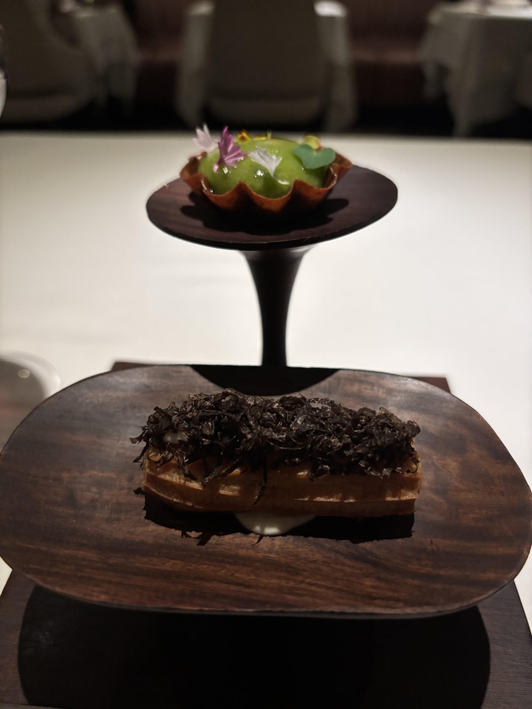 The plating was beautiful, I was however disappointed with the dessert and the chicken dish (black diamond shape) where you’ll notice there is a bit of gold and truffle missing respectively. I know it’s tiny and a bit nitpicky but I’m at a Michelin Star restaurant so I expect it to be perfect.