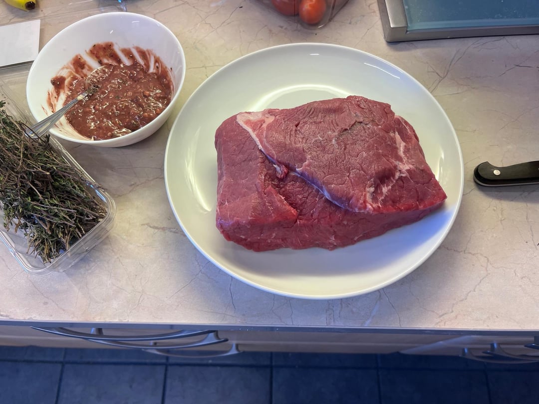 Jessy_84 12 months ago Here this cut is called roastbeef, it’s the upper part of the short loin.I marinated with mustard, blackbery jam, garlic, thyme, rosemary and pepper.Cooked for 3,5 hours at 133°F (56°C) and another half hour at 136°F (58°C) – I got a little nervous, core was “only” at 131°F (55°C).Unfortunately I didn’t get a good picture until everyone got a bite. Family was hungry XD