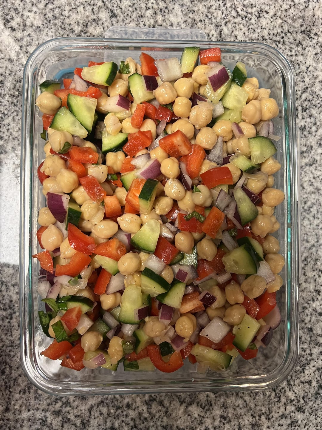 I love and make a chickpea salad that’s similar. I use green pepper instead of red and I add tomatoes and feta. Looks wonderful! I sometimes put it inside of a pita. Usually it disappears in days, even with a huge batch.