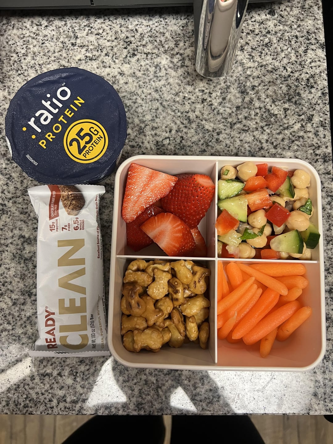 This is very plant based of me but I love meat lol. I guess meat just didn’t find its way into my lunch this week, but that’s fine! I had fun and loved using my little divided container to add some snacks. Protein in lunch will have to come from my favorite yogurts and bars shown in the 2nd photo. Hope this inspired someone!