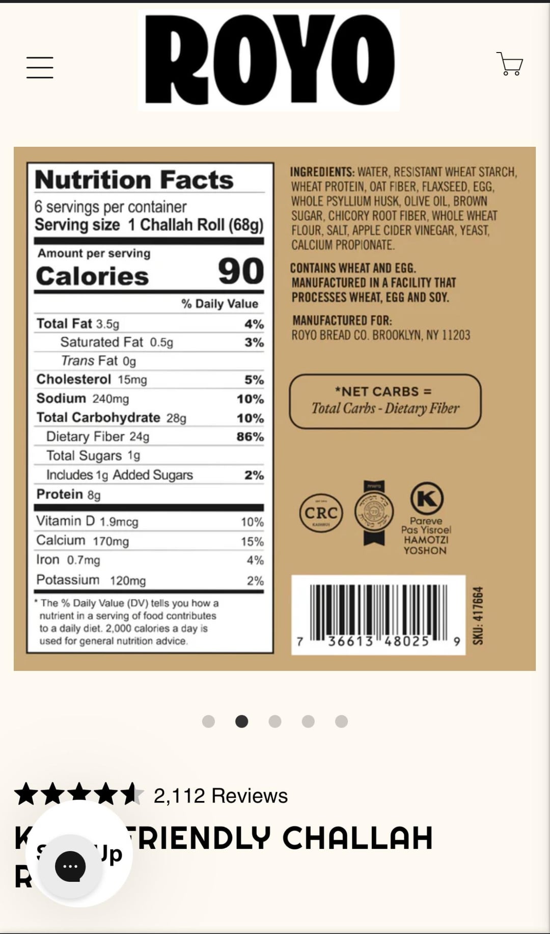 Royo Challah Bread 1 Serving