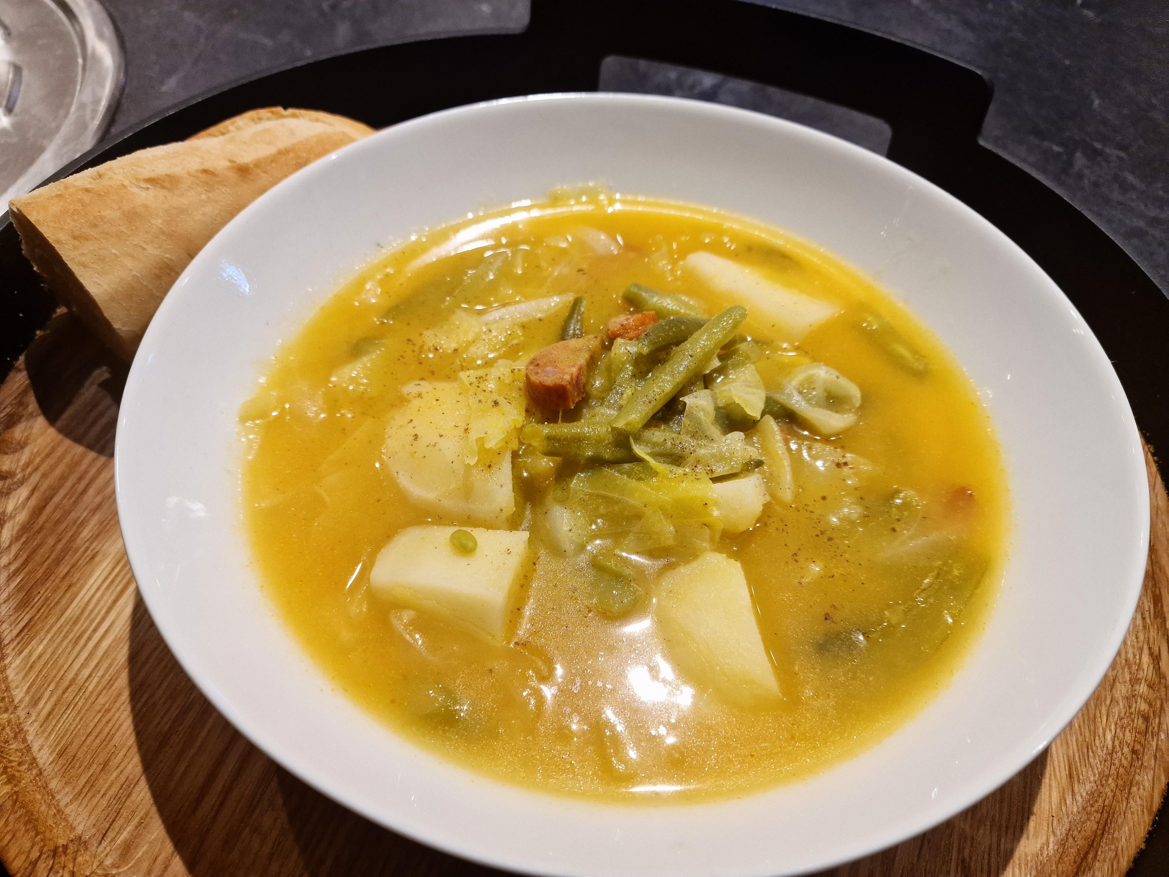 Probably not to everyone's liking but this is recipe from some Spanish relatives. Soup base of carrot, onion, celery, leek, garlic, chicken stock, paprika and chilli. Blended up, then add in cooked chorizo, peeled potatoes, chopped cabbage and sliced green beans. Great with bread on a cold night with a glass of red.
